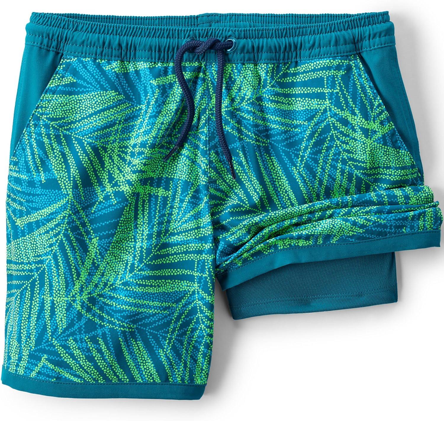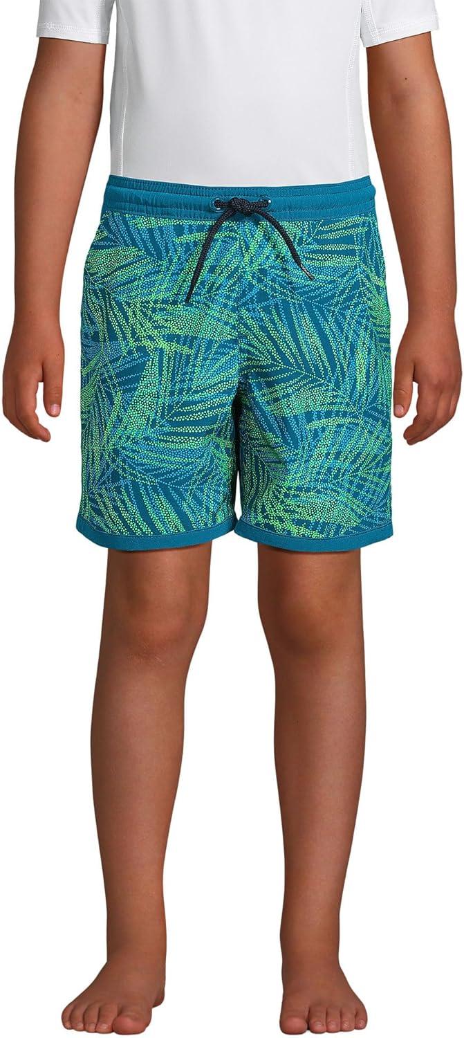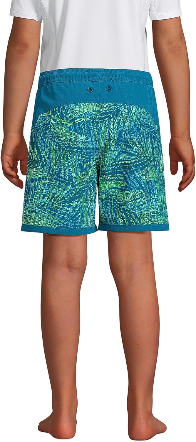 Lands’ End Boys Hydroliner Quick Dry UPF 50 Swim Trunk(Paradise Teal Stipple Palm)
