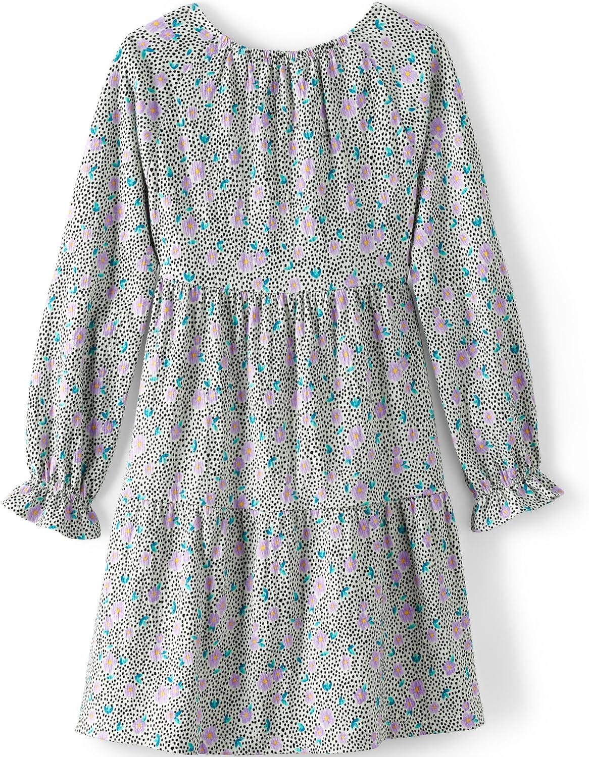 Lands’ End Girls Long Sleeve Velvet Dress(Ivory Dots and Florals)