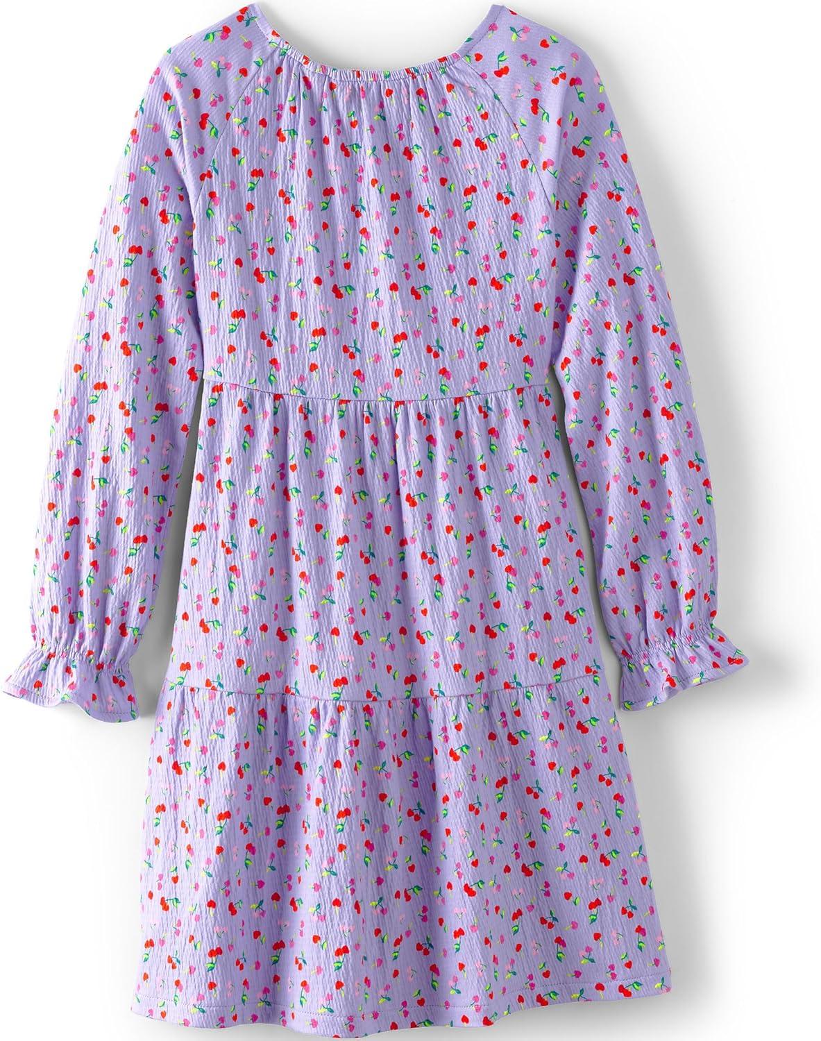 Lands’ End Girls Long Sleeve Velvet Dress(Lavender Cherry Hearts)