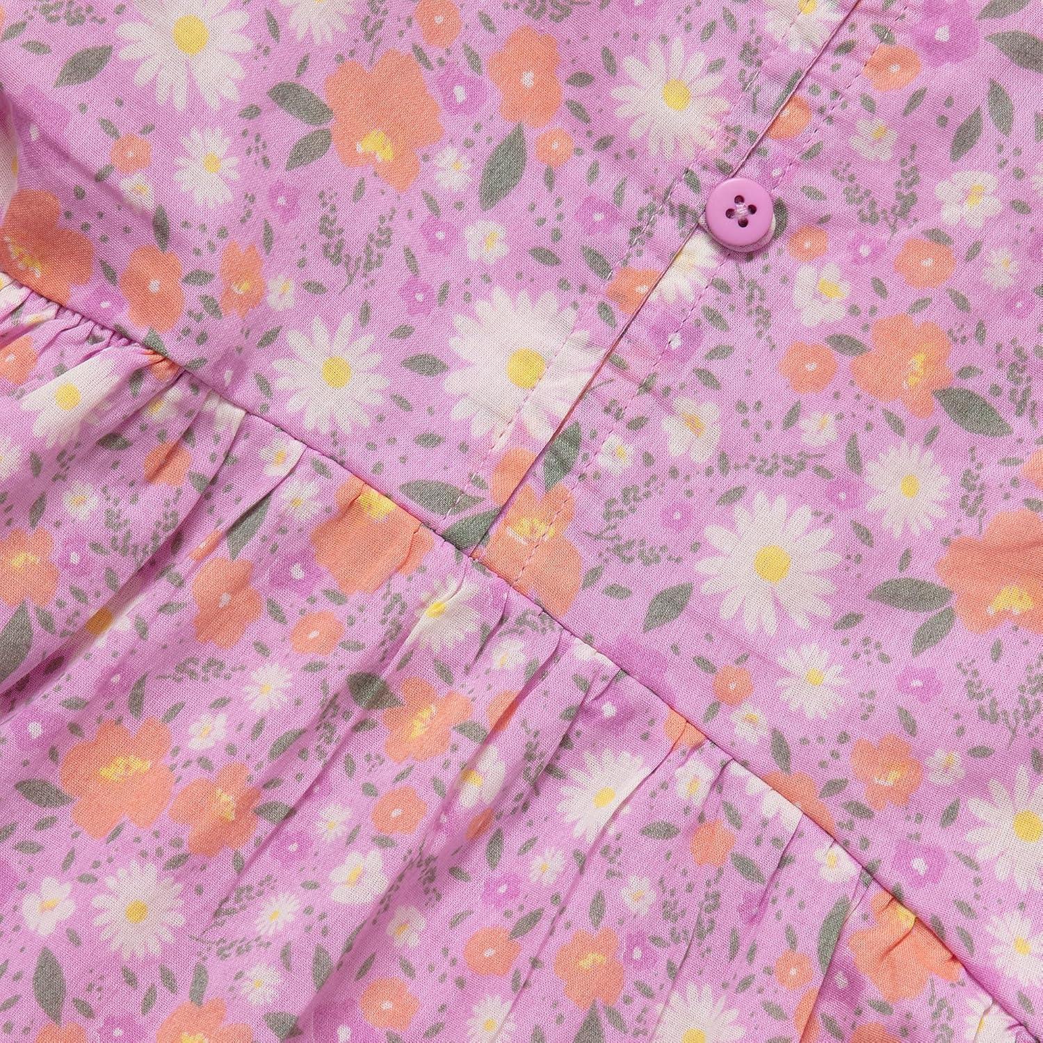 Lands’ End Girls Smocked Flutter Sleeve Tank Dress(Sunset Floral Print)