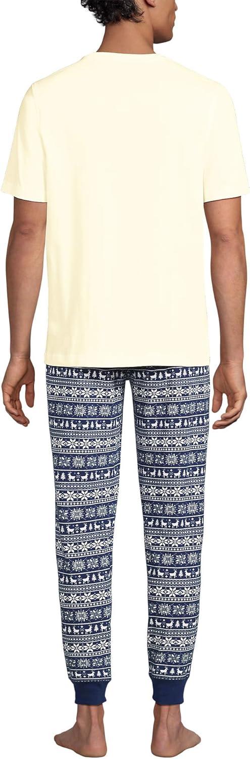 Lands’ End Men’s Traditional Fit Short Sleeve Travel Kit Shirt(Ivory/Mariner Blue Anchors)