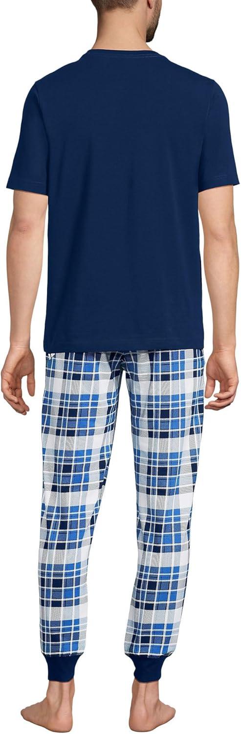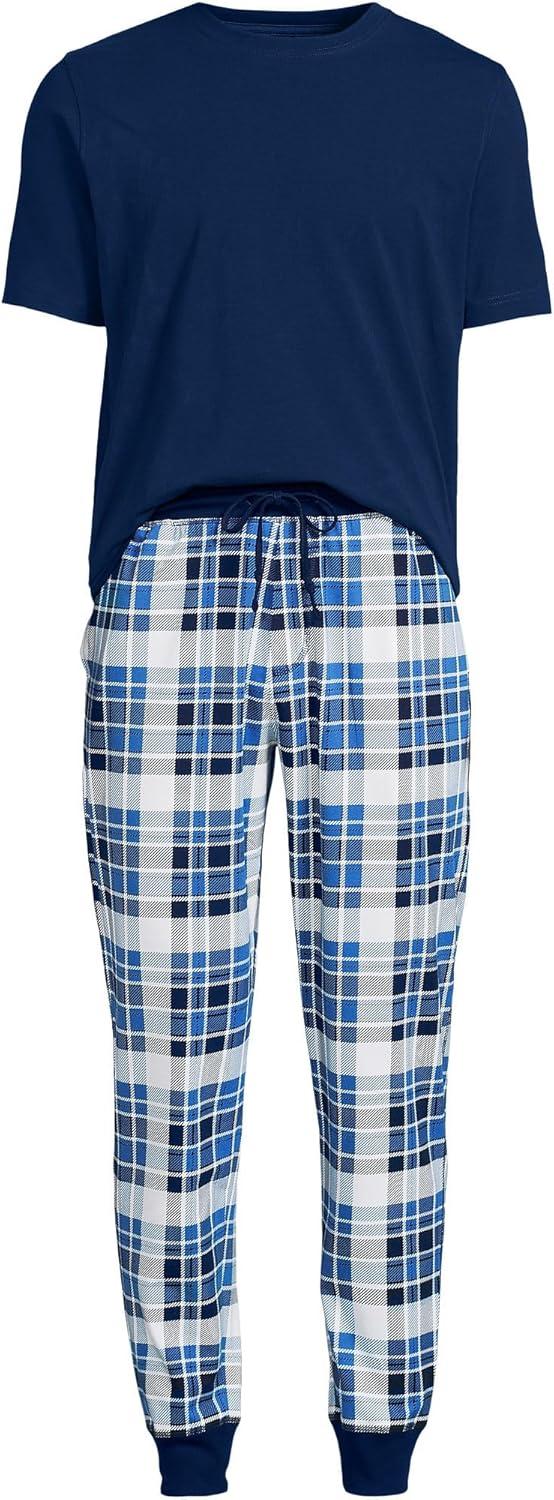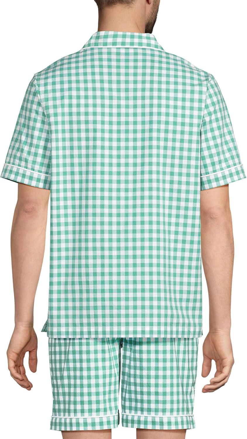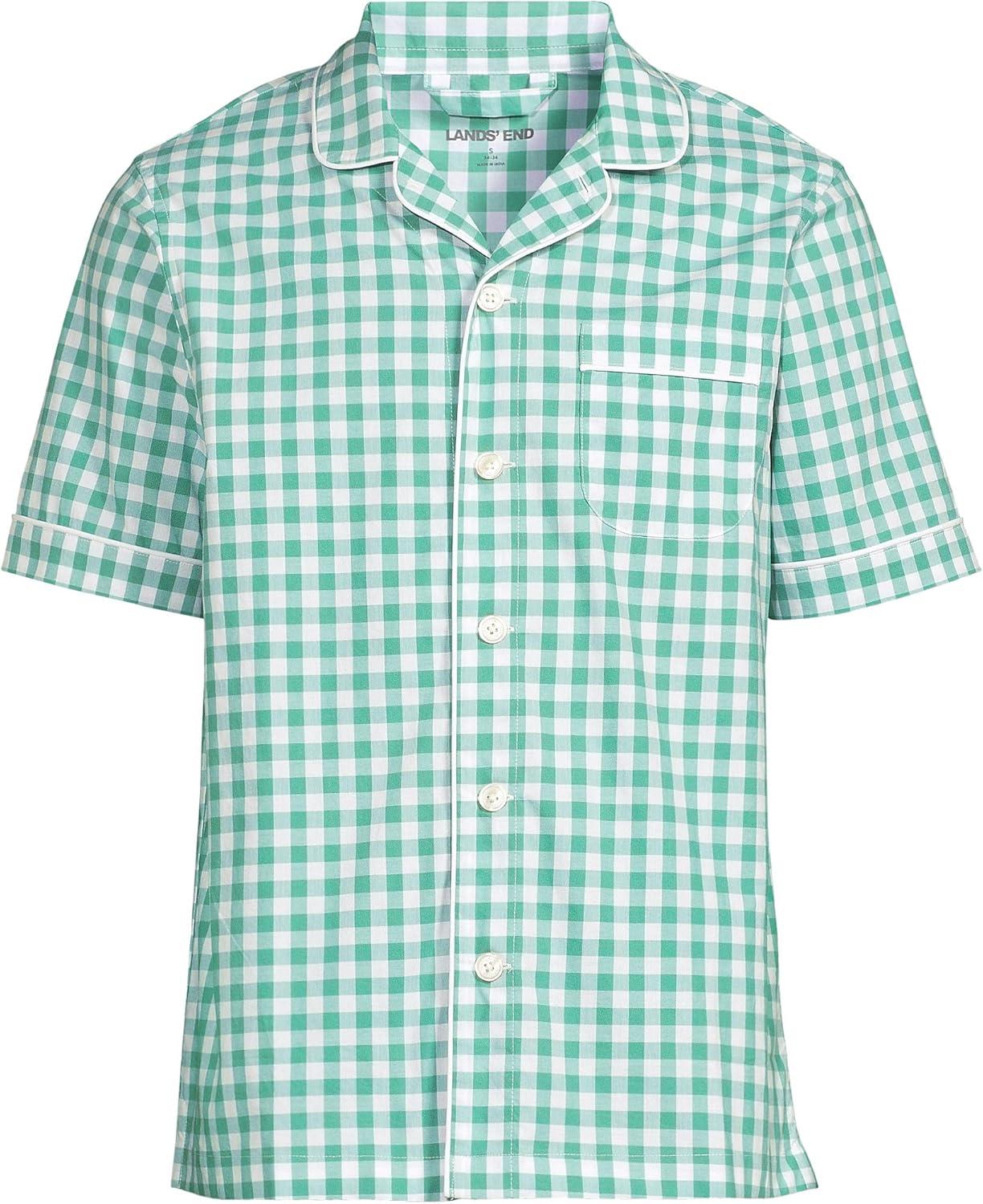 Lands’ End Men’s Traditional Fit Short Sleeve Madras Shirt(Mariner Blue/Clover Plaid)