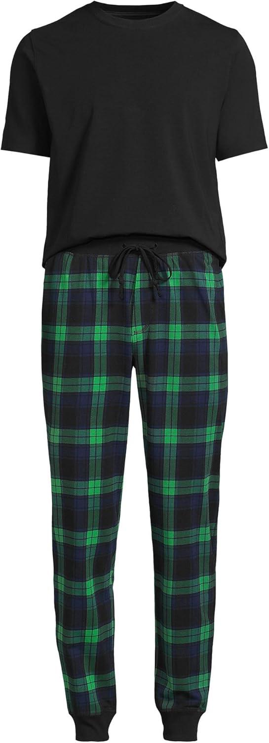 Lands’ End Men’s Traditional Fit Long Sleeve Travel Kit Shirt(Pine Valley/Black Plaid)