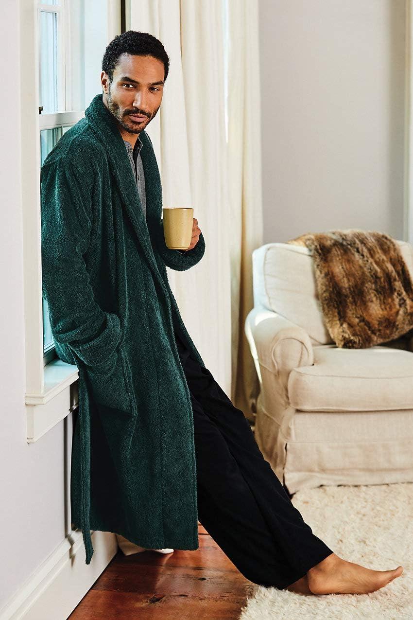 Lands’ End Hearth Warm Fuzzy Mens Slippers, Indoor Outdoor Fur Lined Suede House Slippers for Men Size 7 to 15, Black or Brown House Shoes(Black)