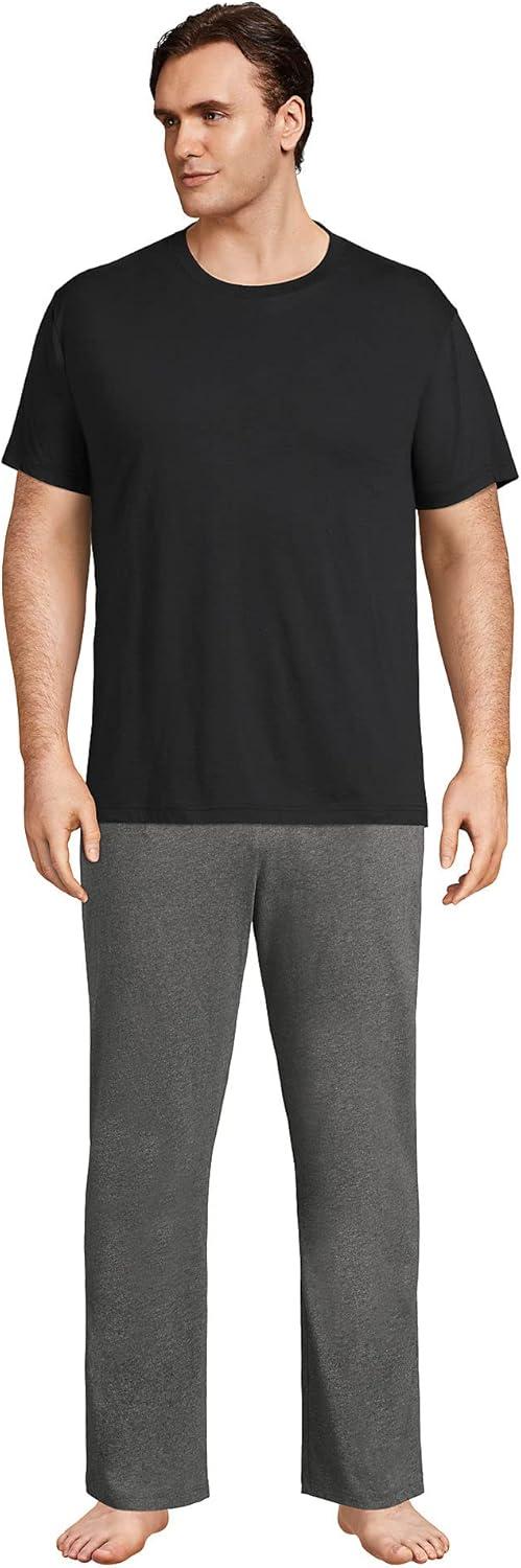 Lands’ End Essentials Men’s Crew Neck T-Shirt 3 Pack – Premium Cotton Tee, Casual Regular Fit(Black)