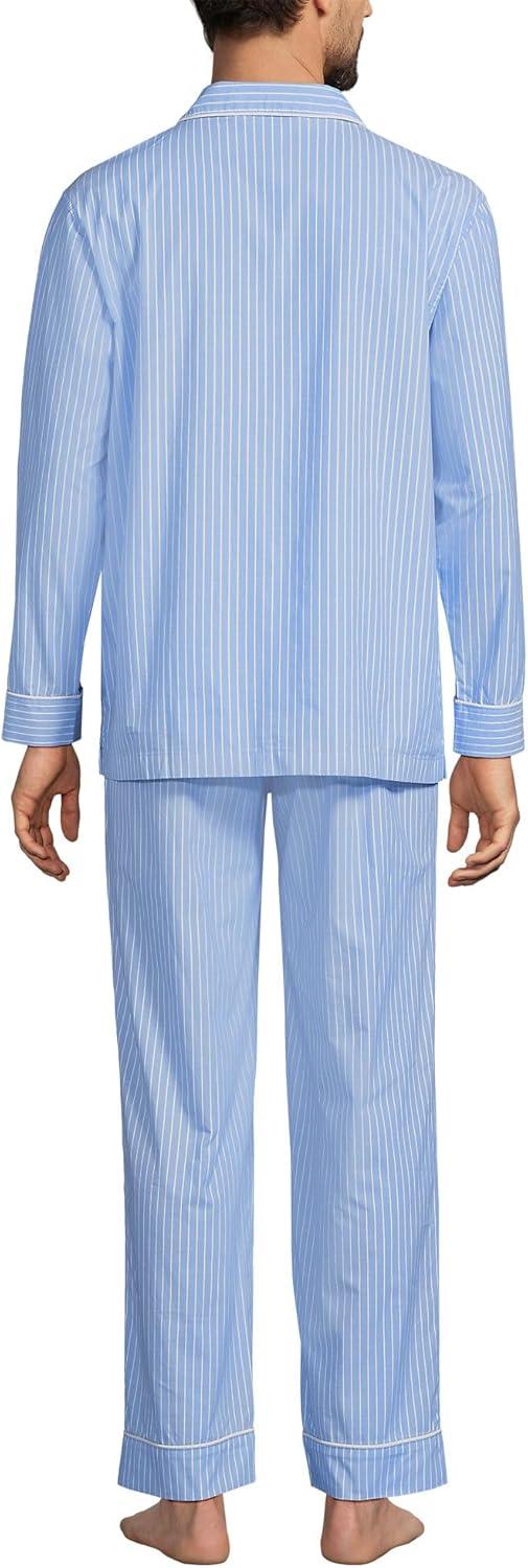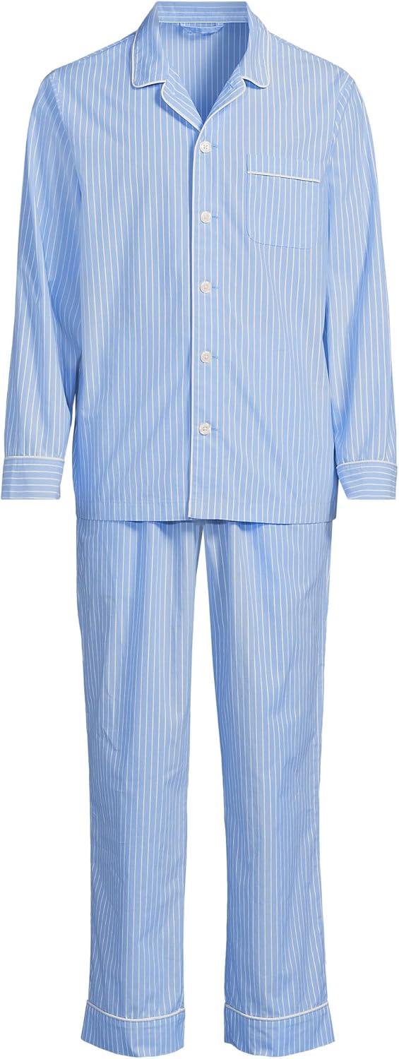 Lands’ End Men’s Traditional Fit Solid No Iron American-Grown Supima Oxford Dress Shirt(Light Blue Sky Classic Stripe)