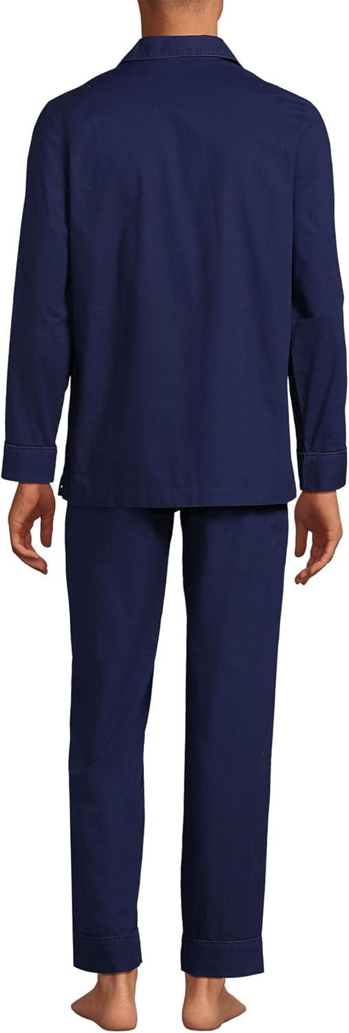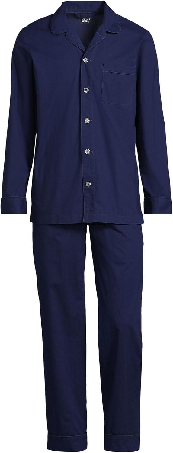 Lands’ End Men’s Tailored Fit No Iron Solid American-Grown Supima Cotton Pinpoint Buttondown Collar Dress Shirt(Deep Sea Navy/Fresh Blue Plaid)