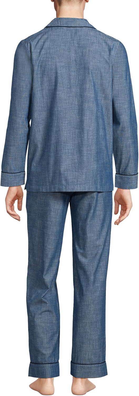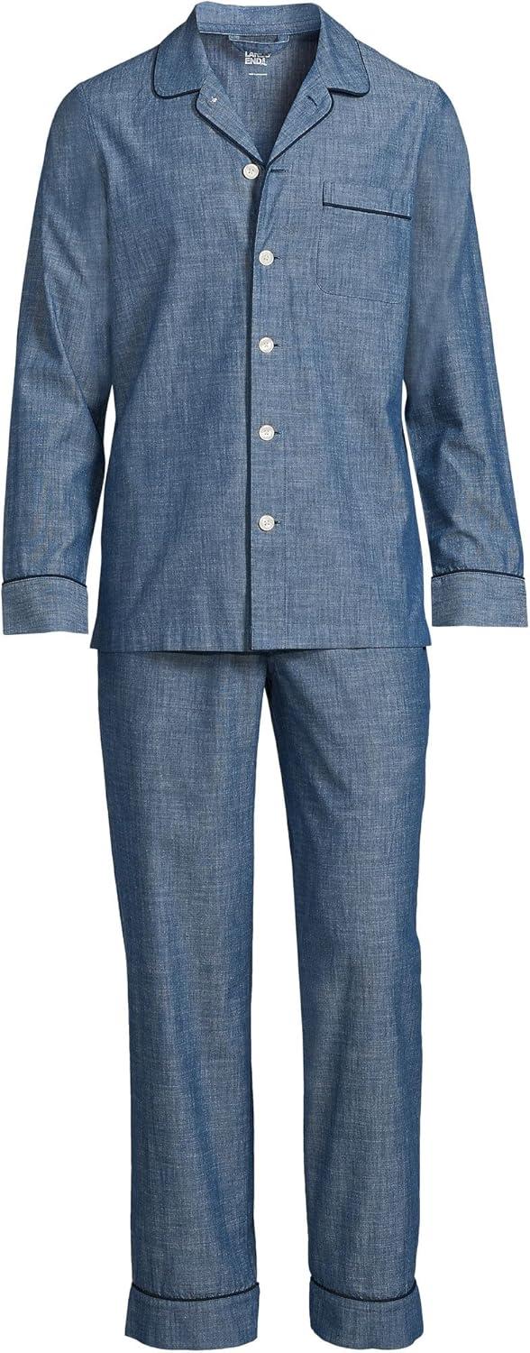 Lands’ End Men’s Traditional Fit Long Sleeve Travel Kit Shirt(Clearlake Blue Plaid)
