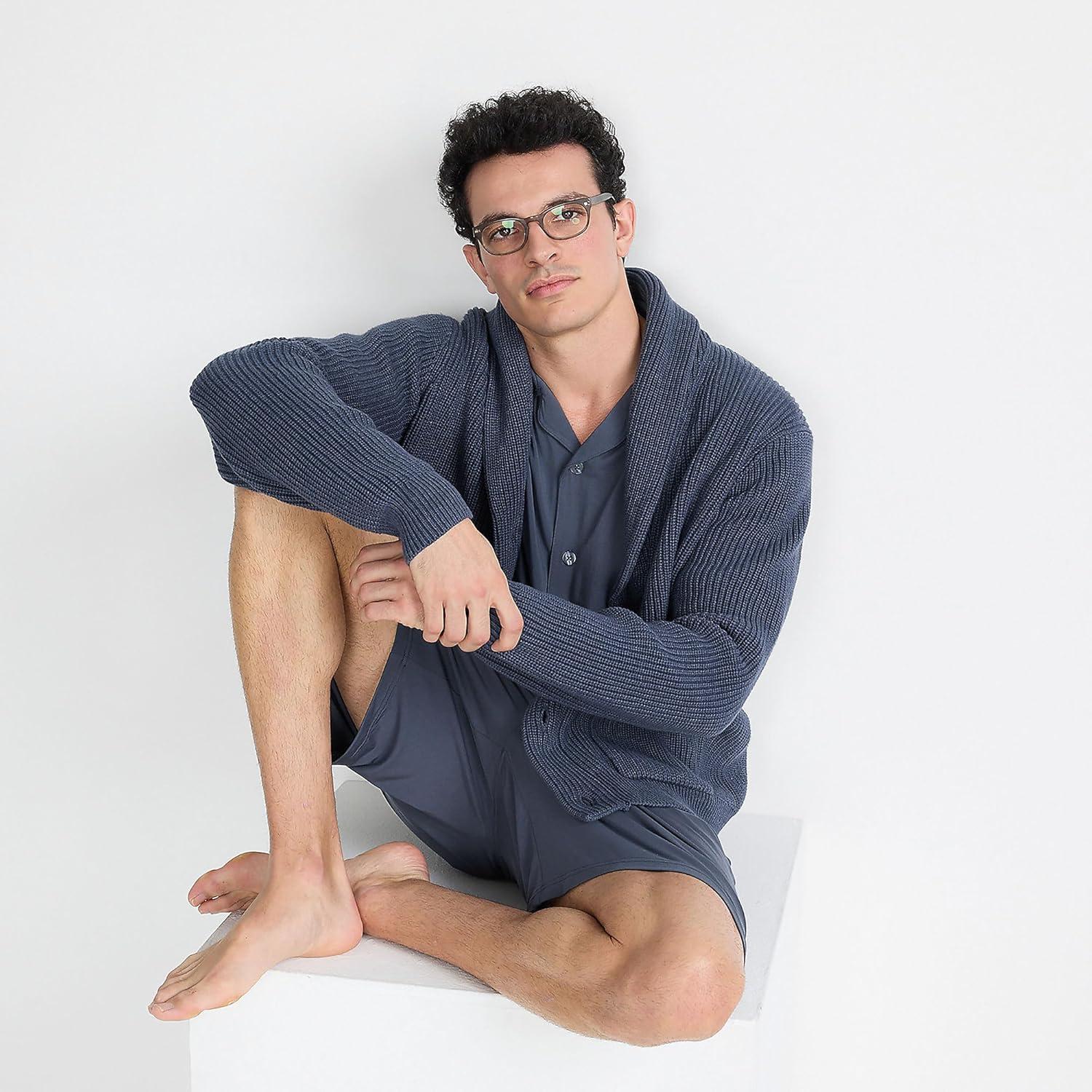 Lands’ End Men’s Button Up Crewneck Sweater(Radiant Navy/Ivory Mariner)