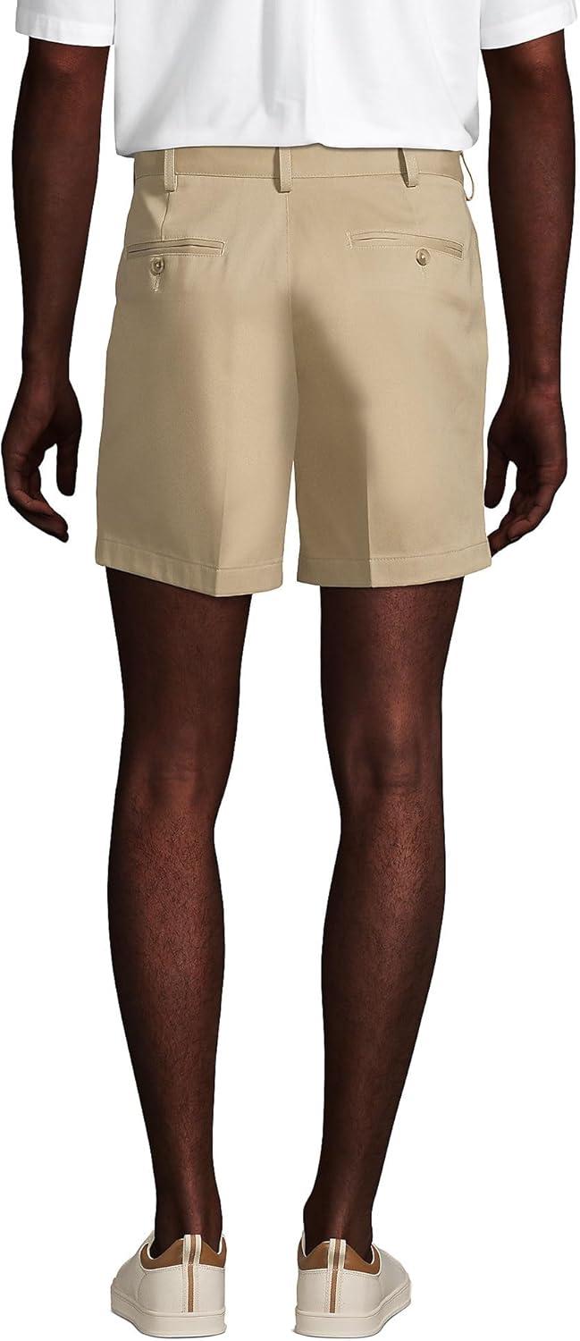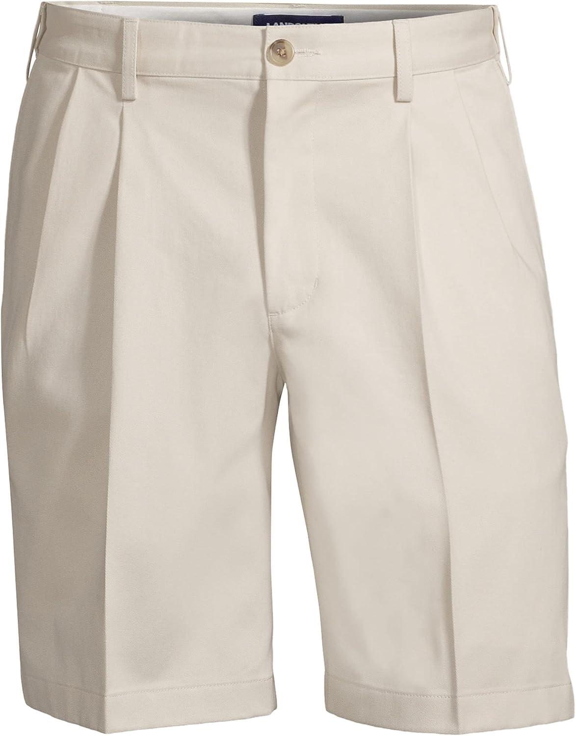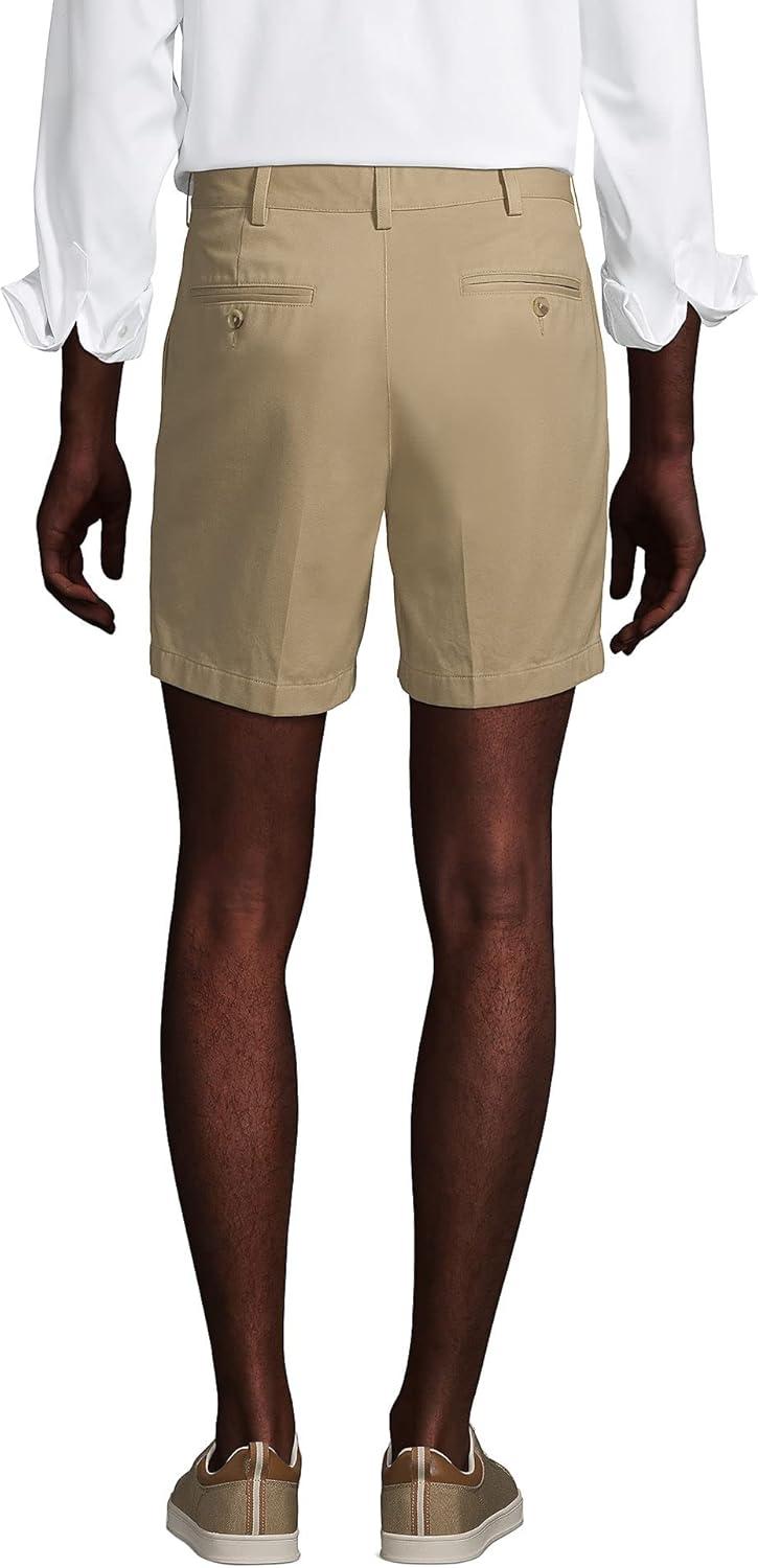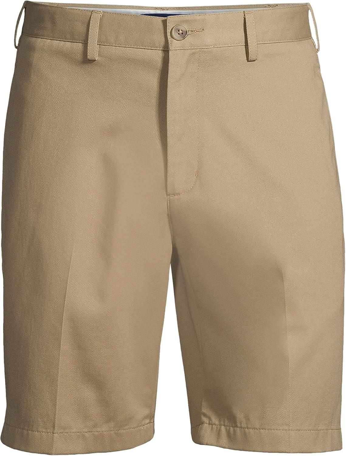 Lands’ End Men’s Comfort Waist Pleated 9″ No Iron Chino Shorts(Khaki)