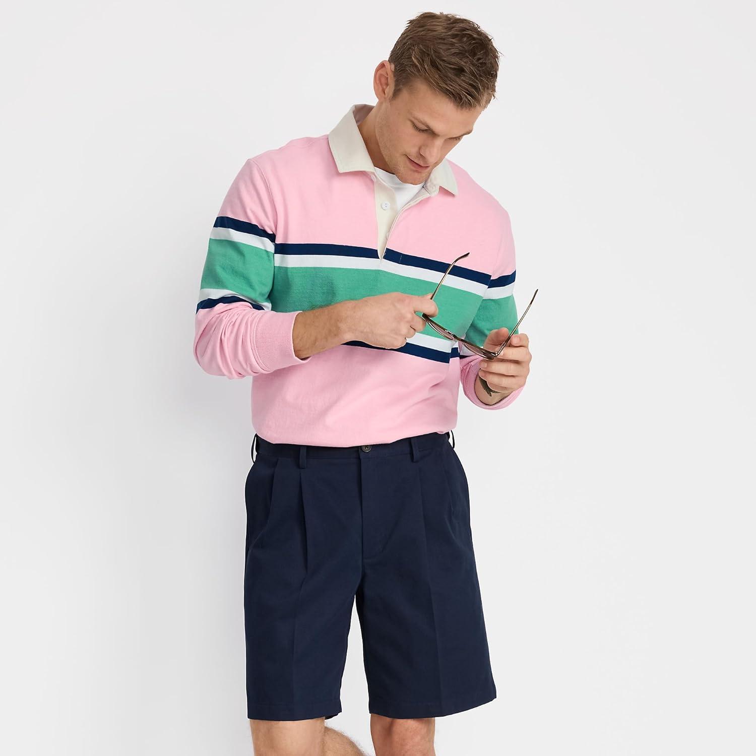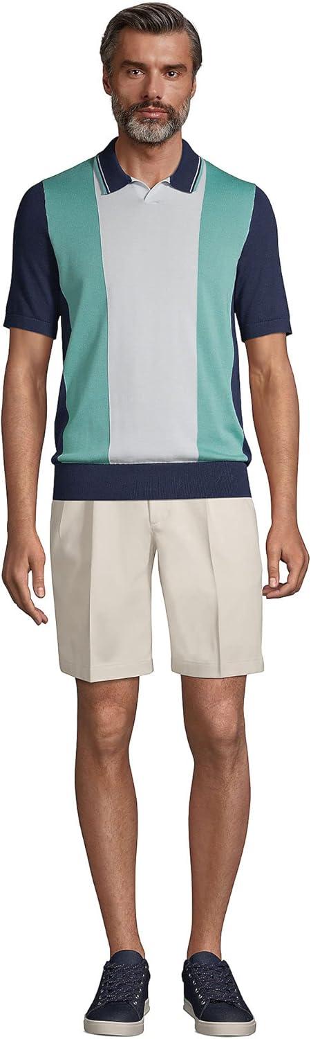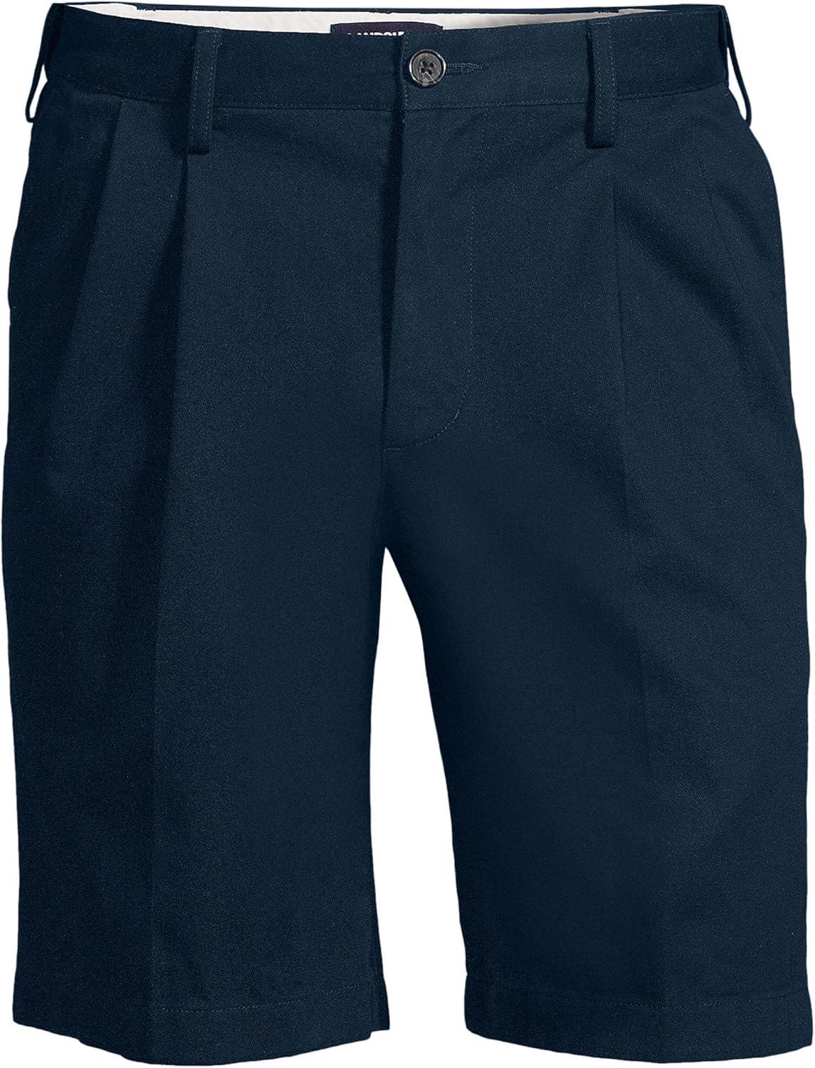 Lands’ End Men’s Comfort Waist Pleated 9″ No Iron Chino Shorts(Radiant Navy)