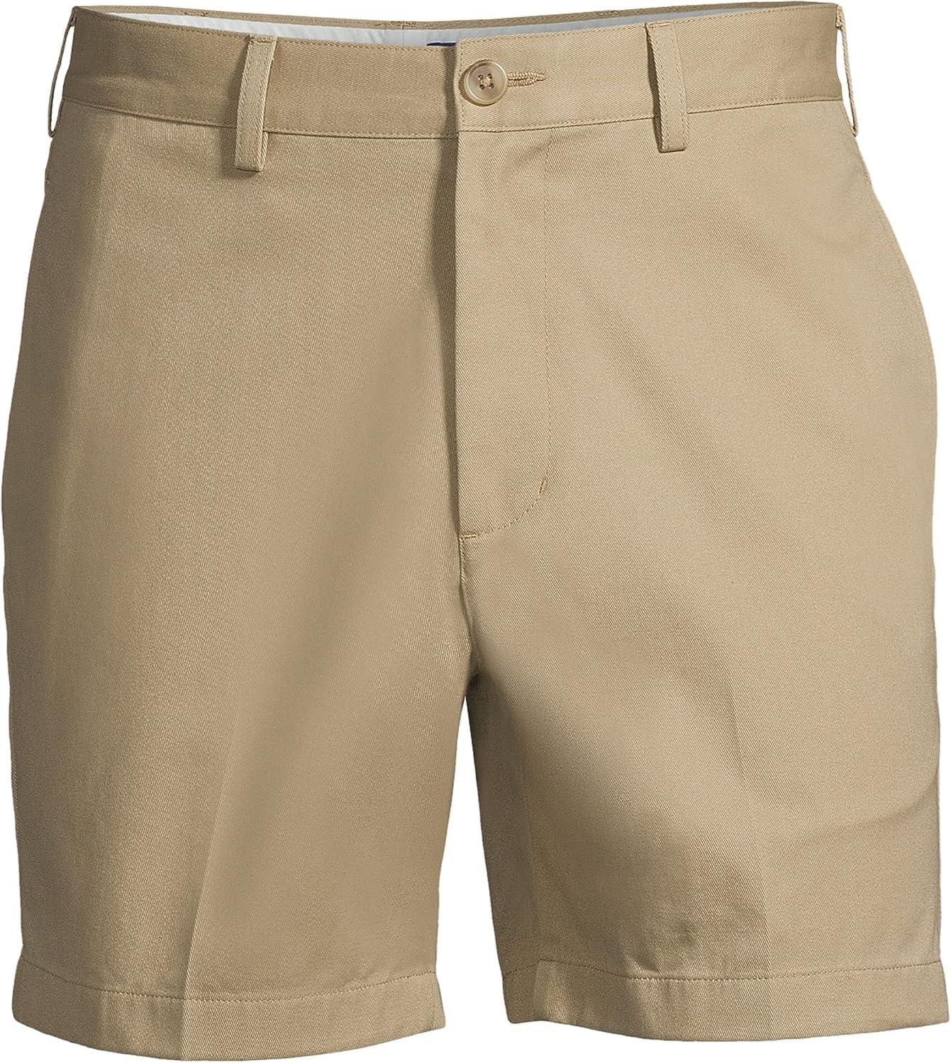 Lands’ End Men’s Comfort Waist 6″ No Iron Chino Shorts(Khaki)