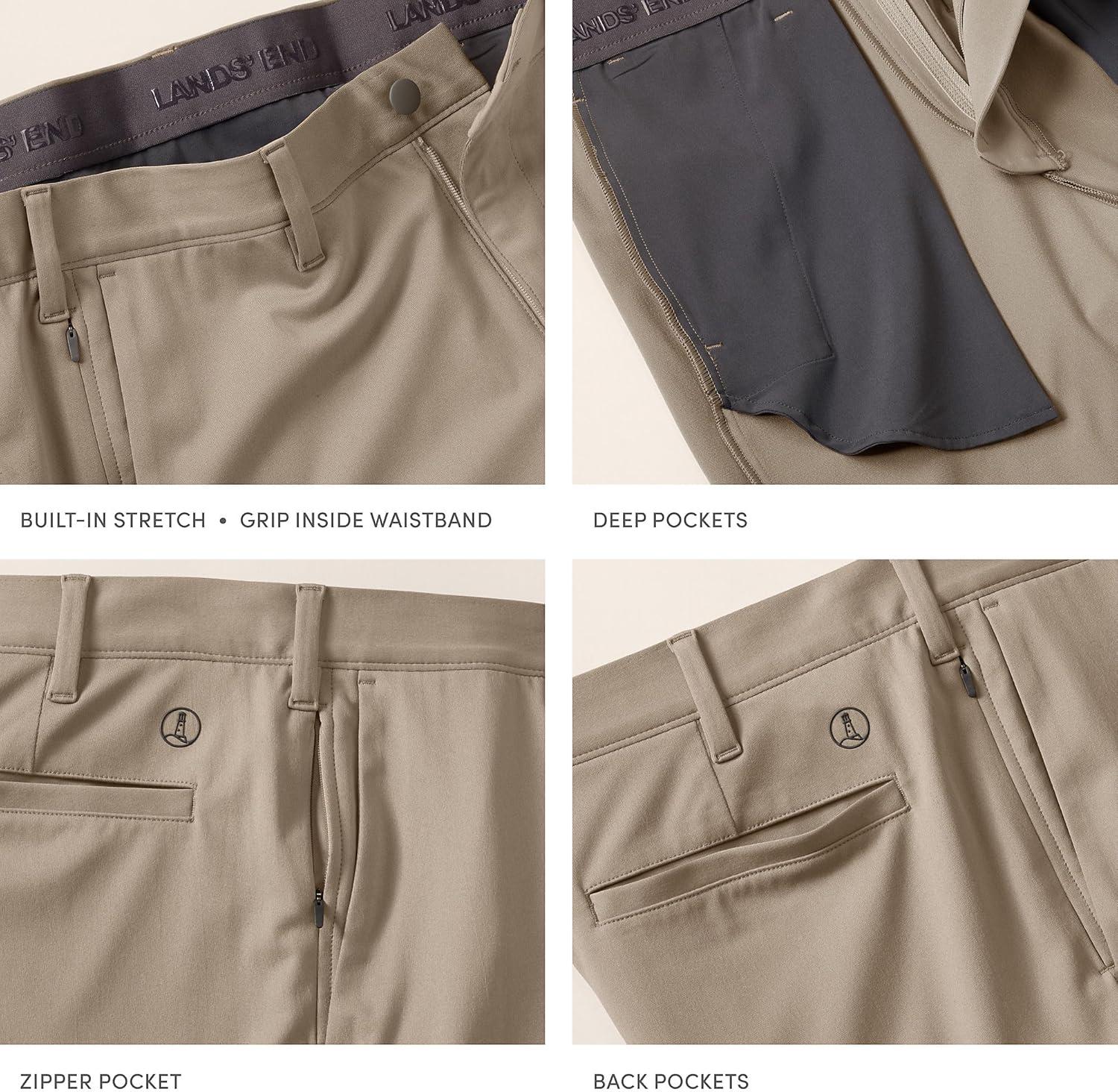 Lands’ End Men’s Traditional Fit Flex Performance Stretch Golf Pants(Khaki)