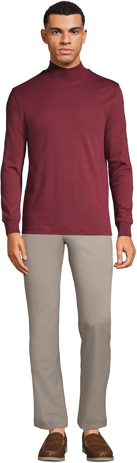 Lands’ End Men’s American-Grown Supima Cotton Mock Turtleneck Shirt(Rich Burgundy)
