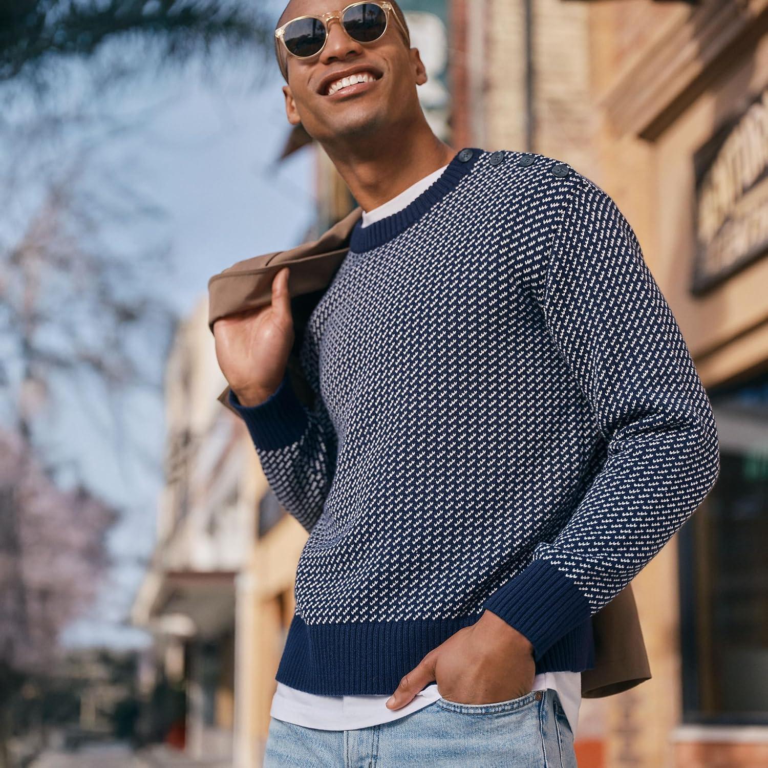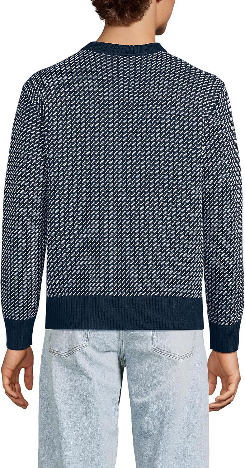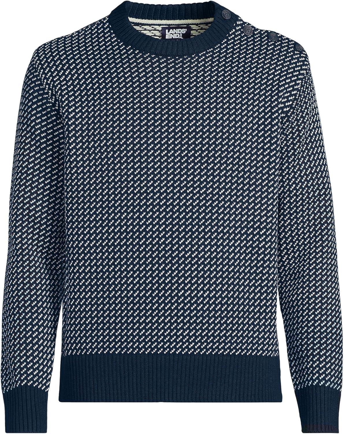Lands’ End Men’s Button Up Crewneck Sweater(Radiant Navy/Ivory Mariner)
