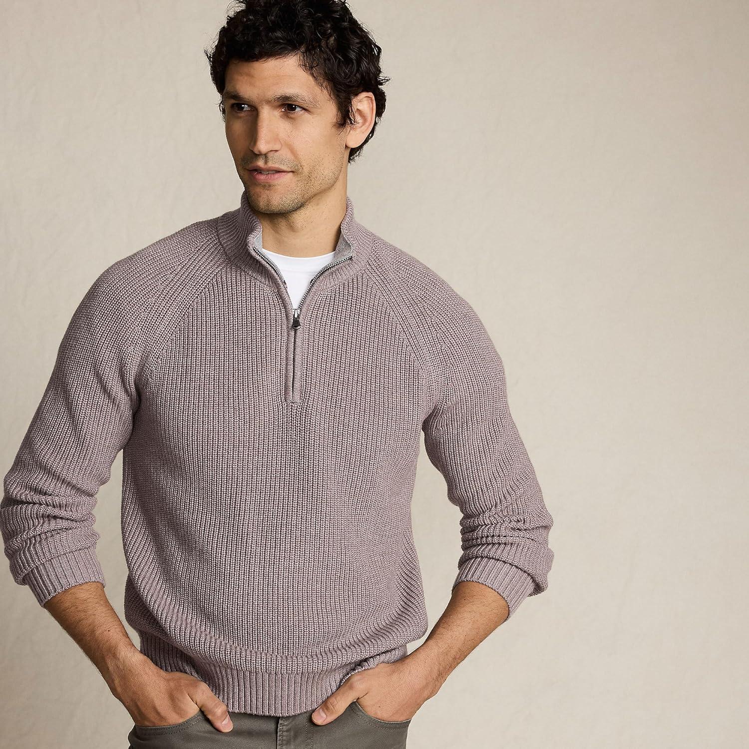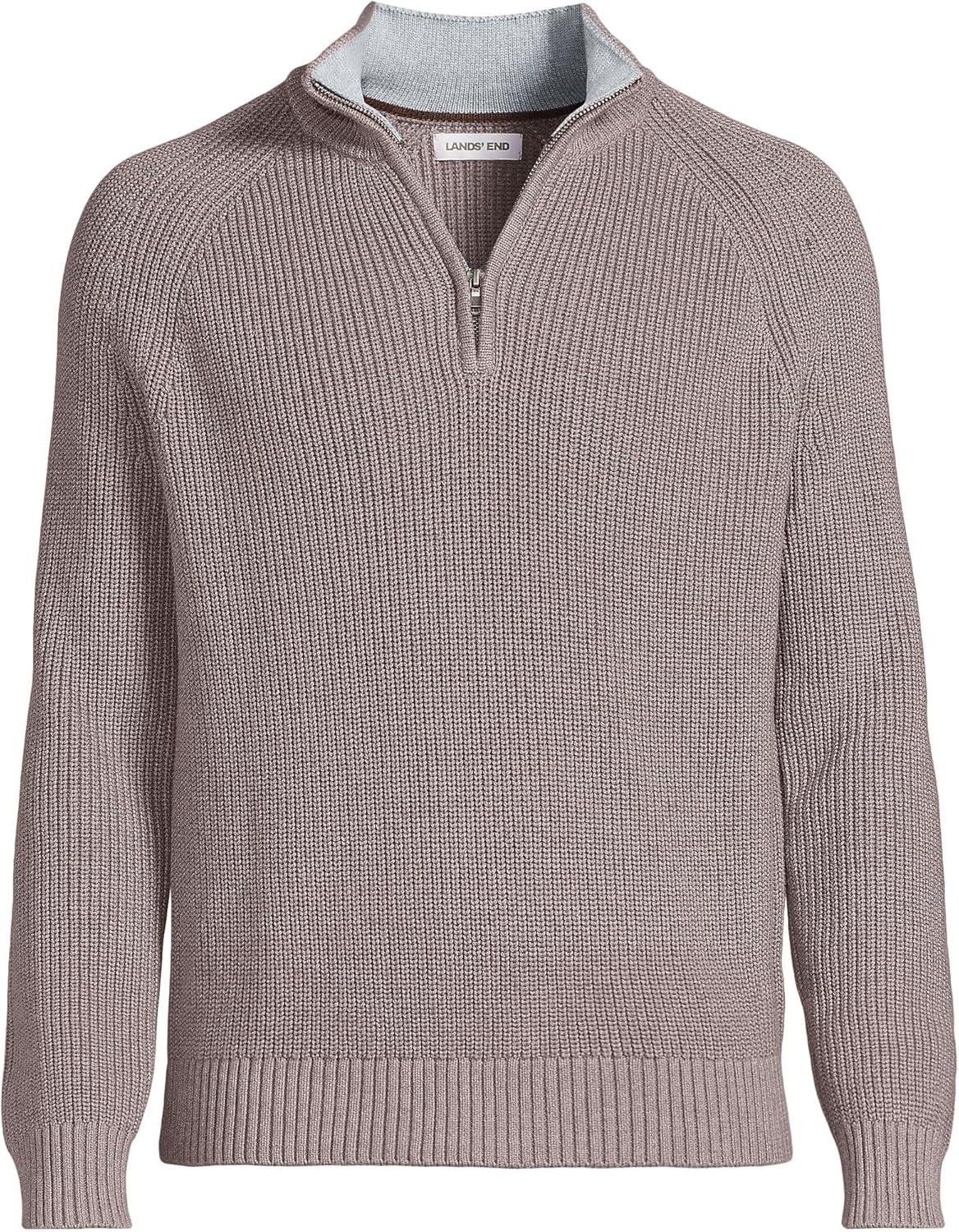 Lands’ End Men’s Drifter Quarter Zip Sweater(Light Bark Heather)