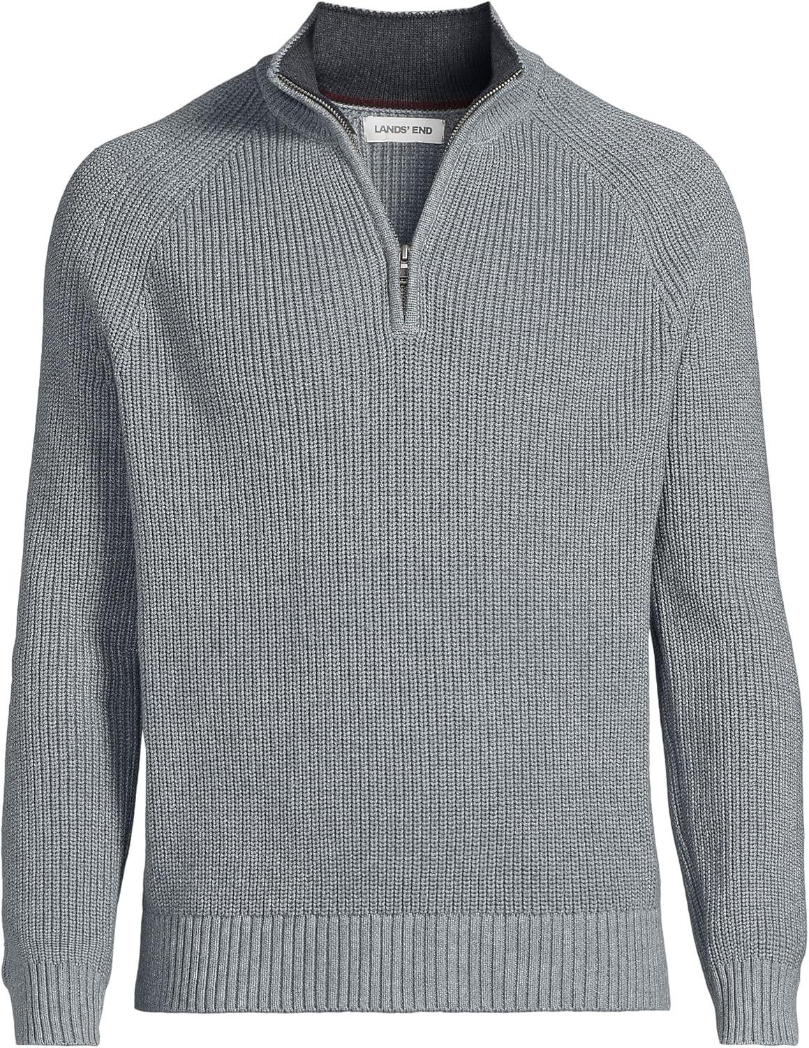 Lands’ End Men’s Drifter Quarter Zip Sweater(Pewter Heather)