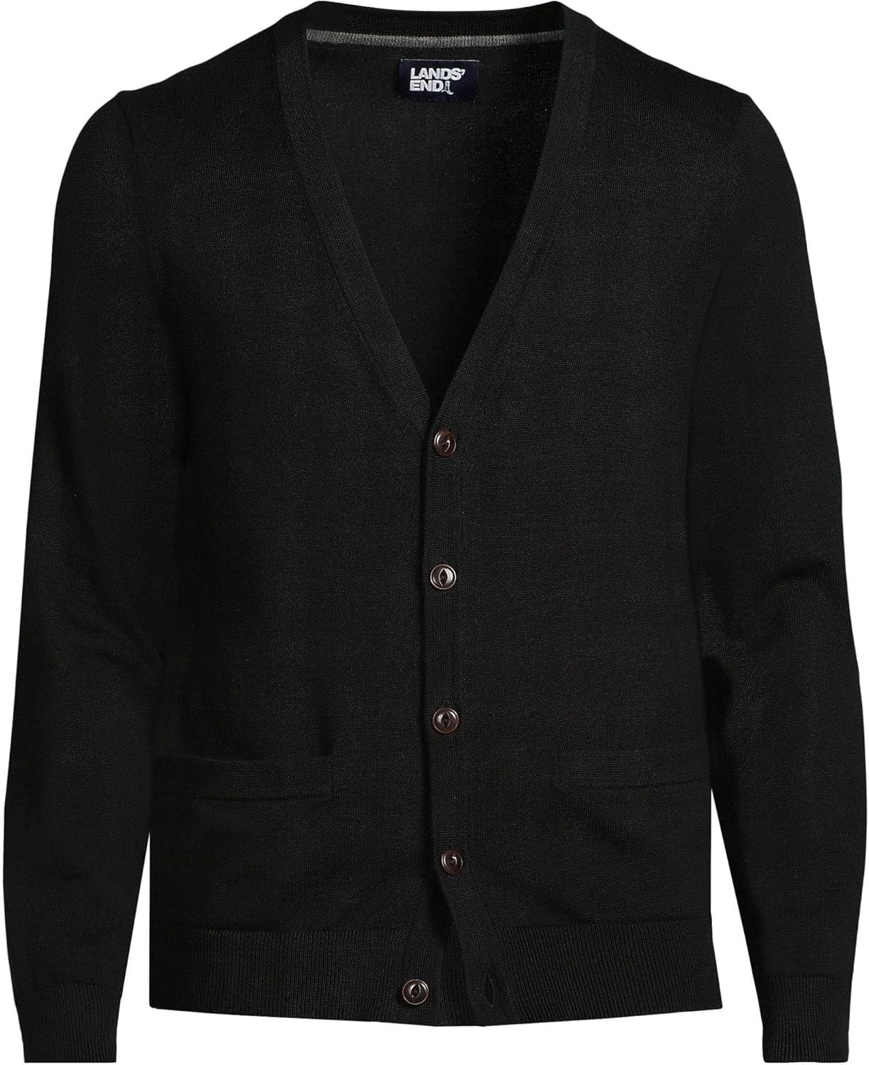 Lands’ End Men’s Fine Gauge Cotton Cardigan(Black)