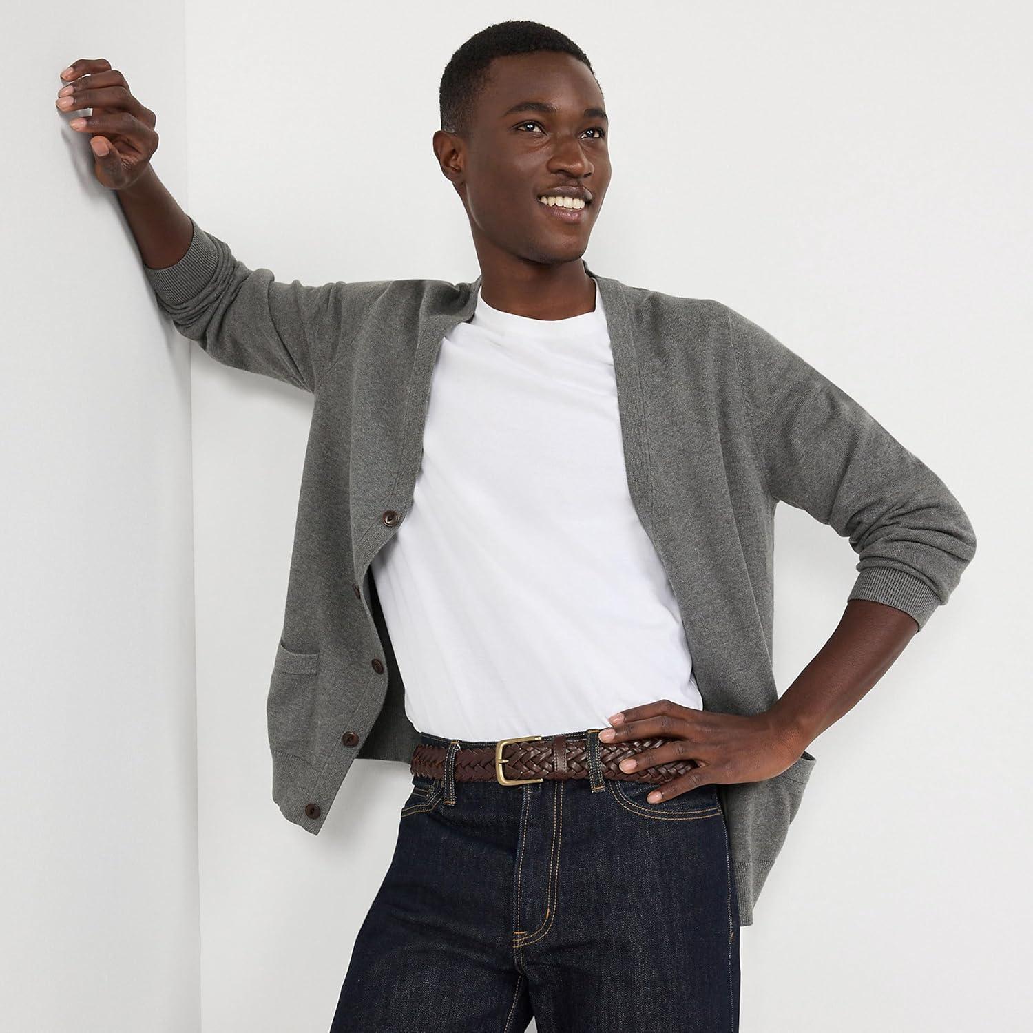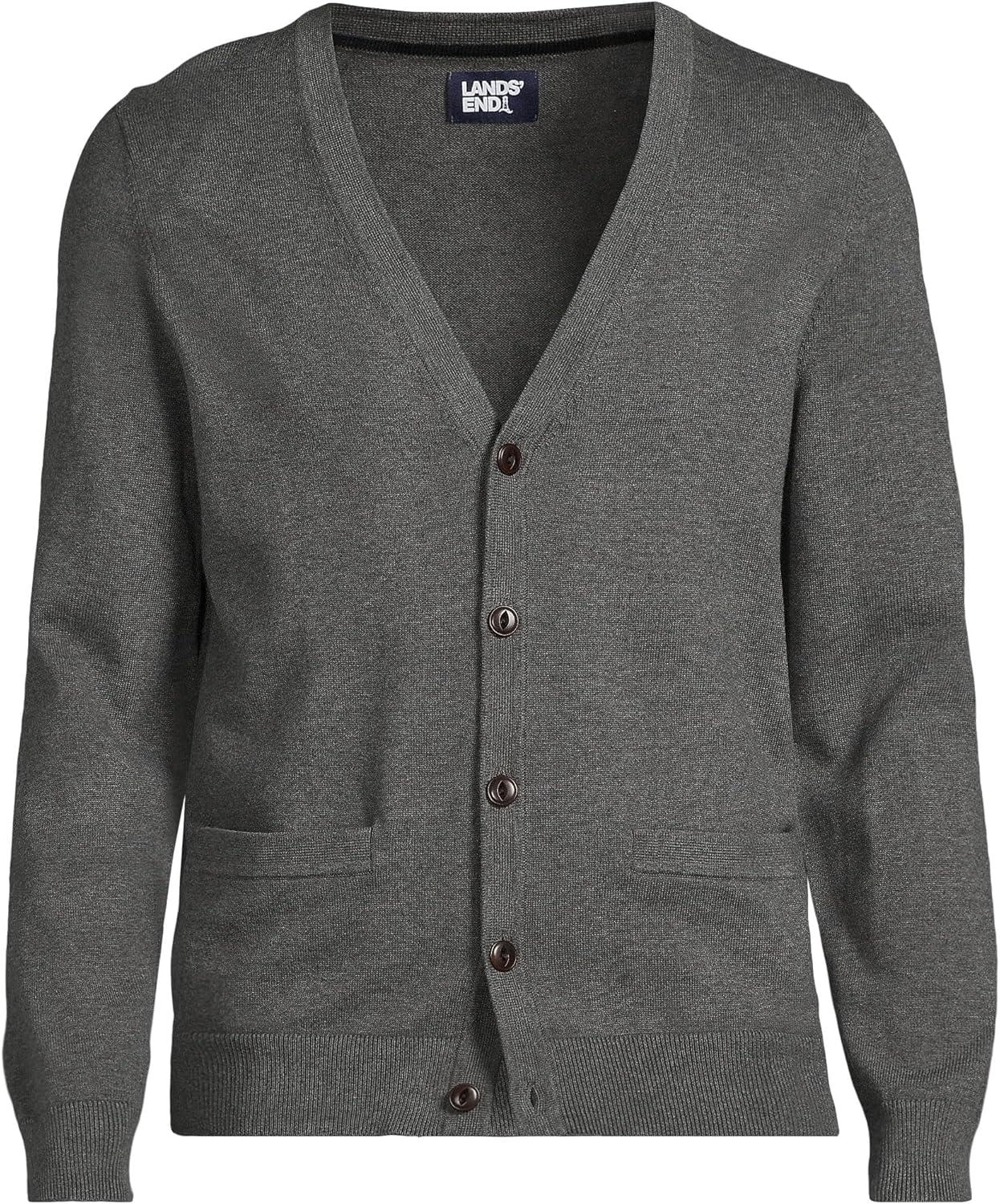 Lands’ End Men’s Fine Gauge Cotton Cardigan(Charcoal Heather)
