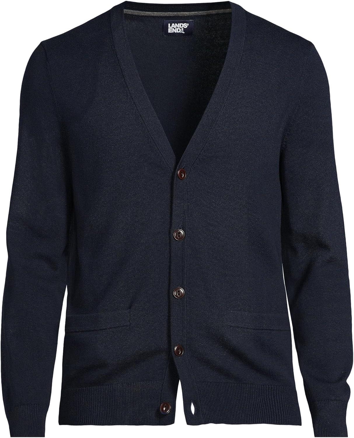 Lands’ End Men’s Fine Gauge Cotton Cardigan(Radiant Navy)