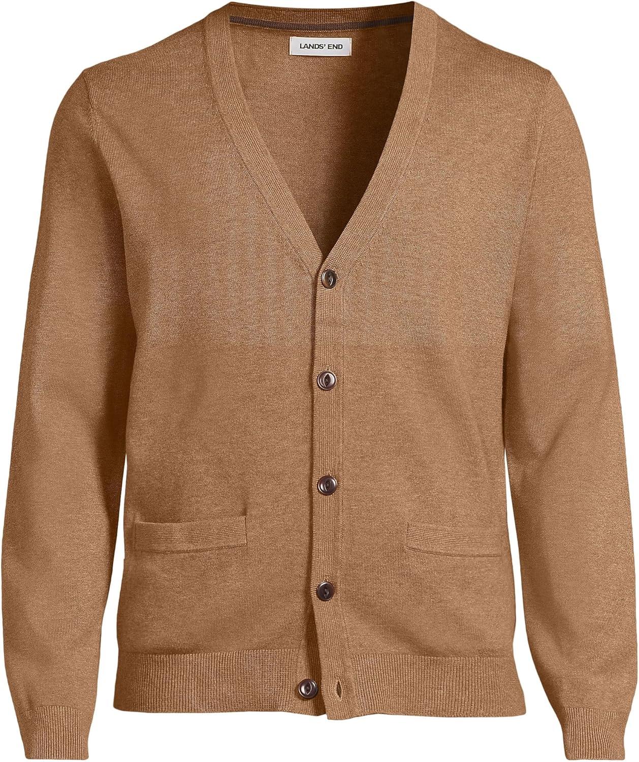 Lands’ End Men’s Fine Gauge Cotton Cardigan(Soft Camel Brown Heather)