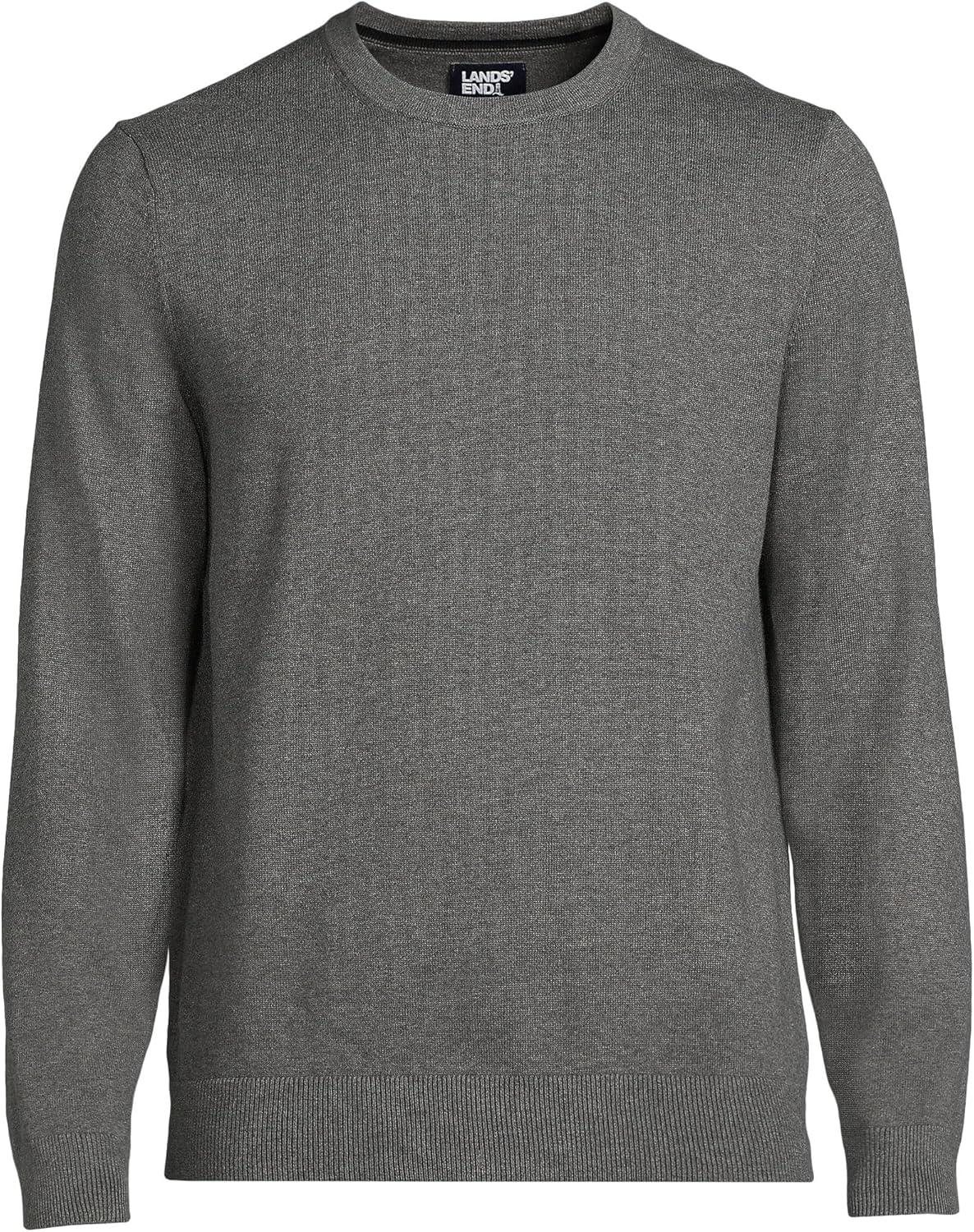 Lands’ End Men’s Fine Gauge Cotton Crew Neck Sweater(Charcoal Heather)