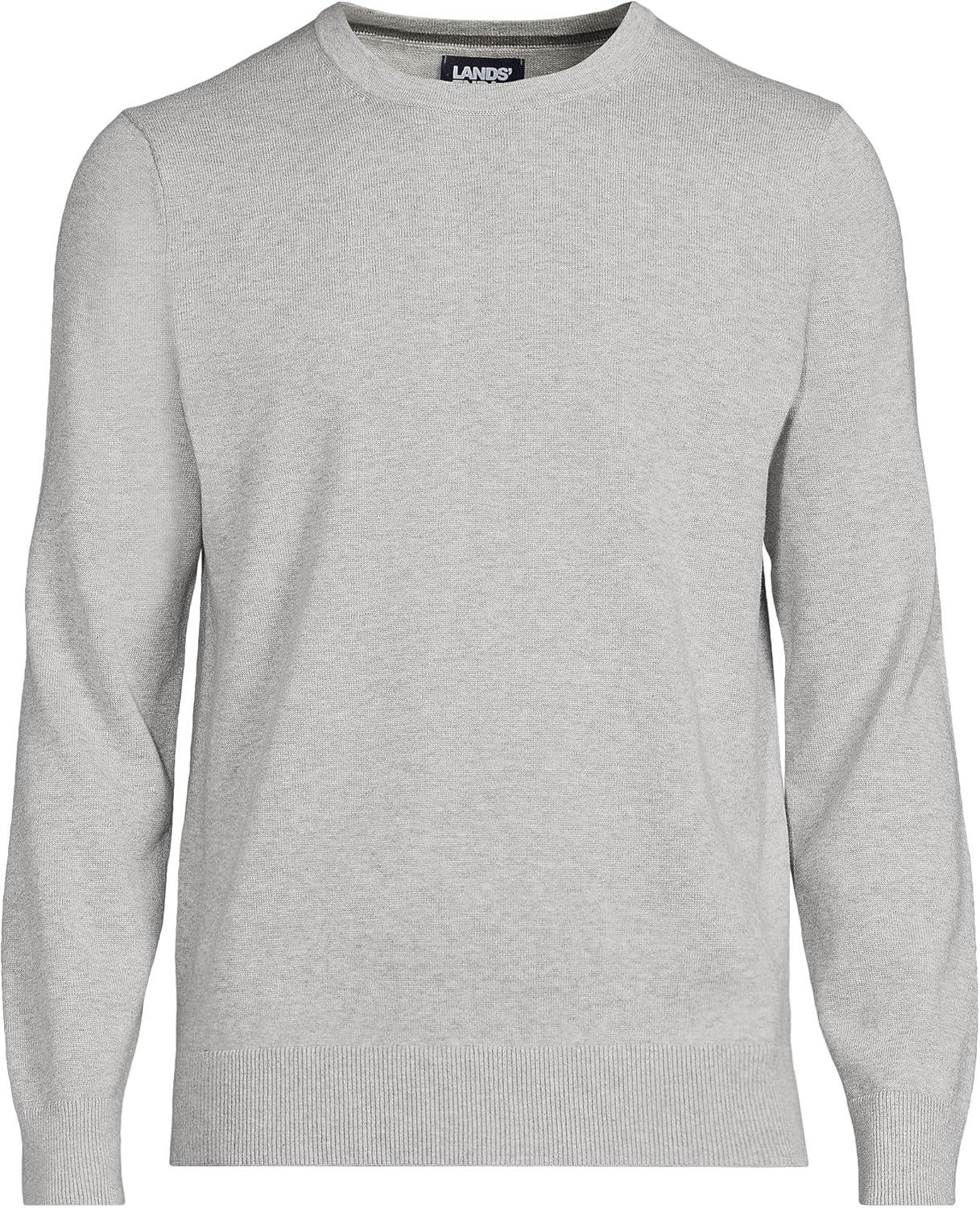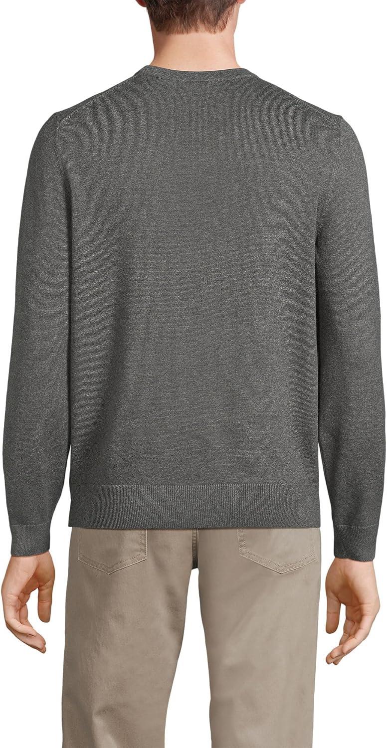 Lands’ End Men’s Fine Gauge Cotton Crew Neck Sweater(Gray Heather)
