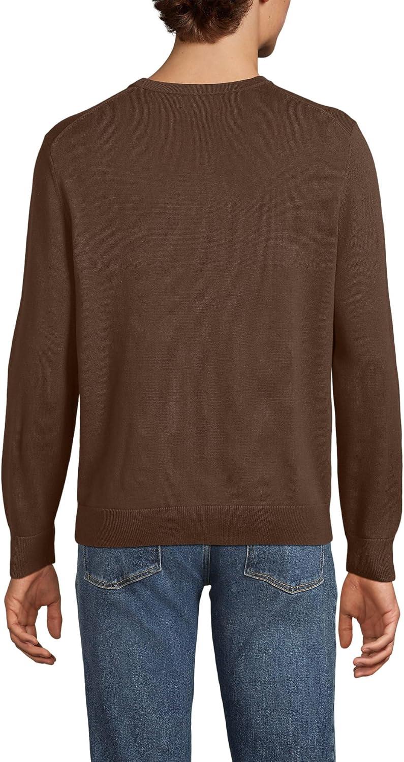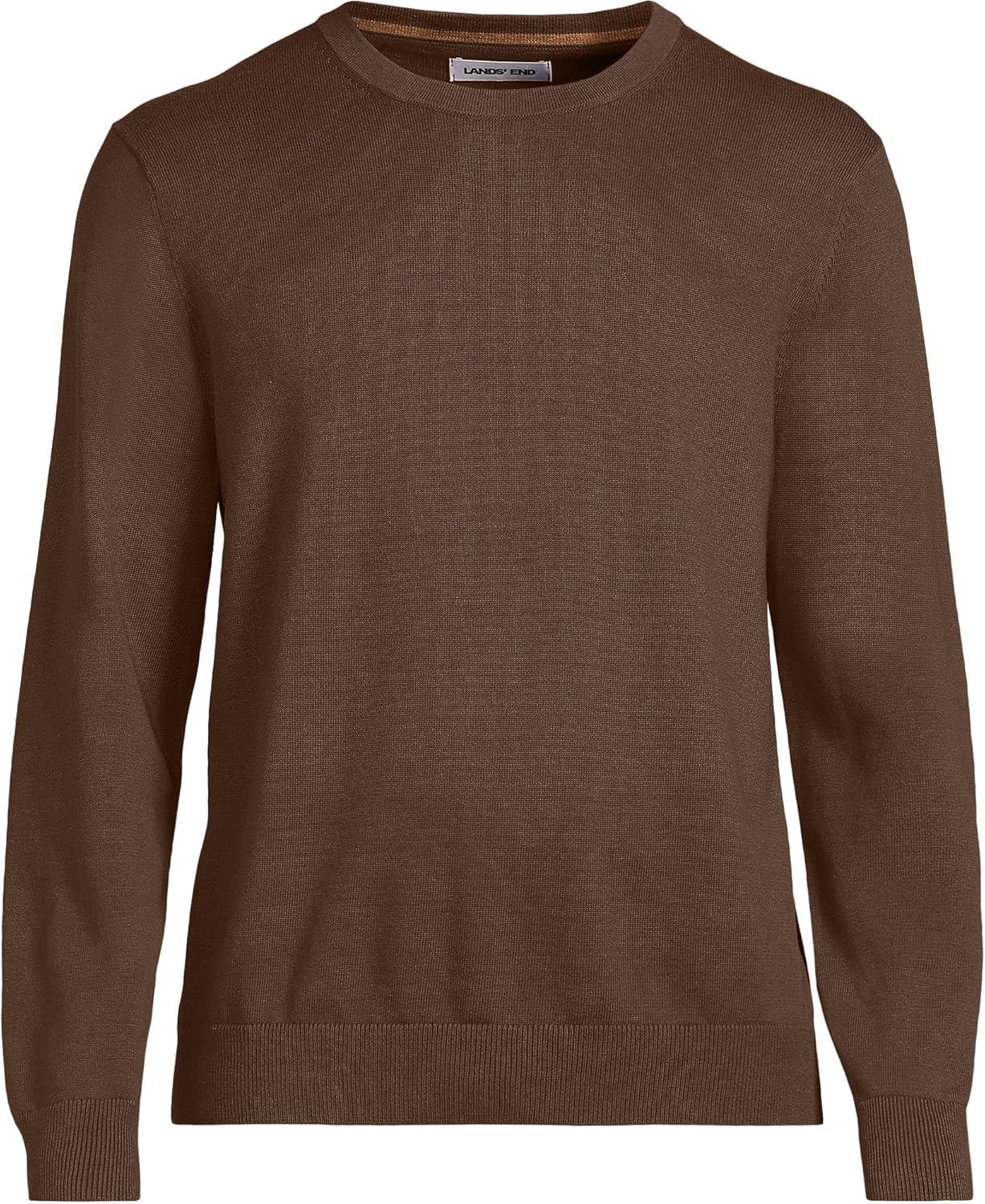 Lands’ End Men’s Fine Gauge Cotton Crew Neck Sweater(Dark Walnut Brown)
