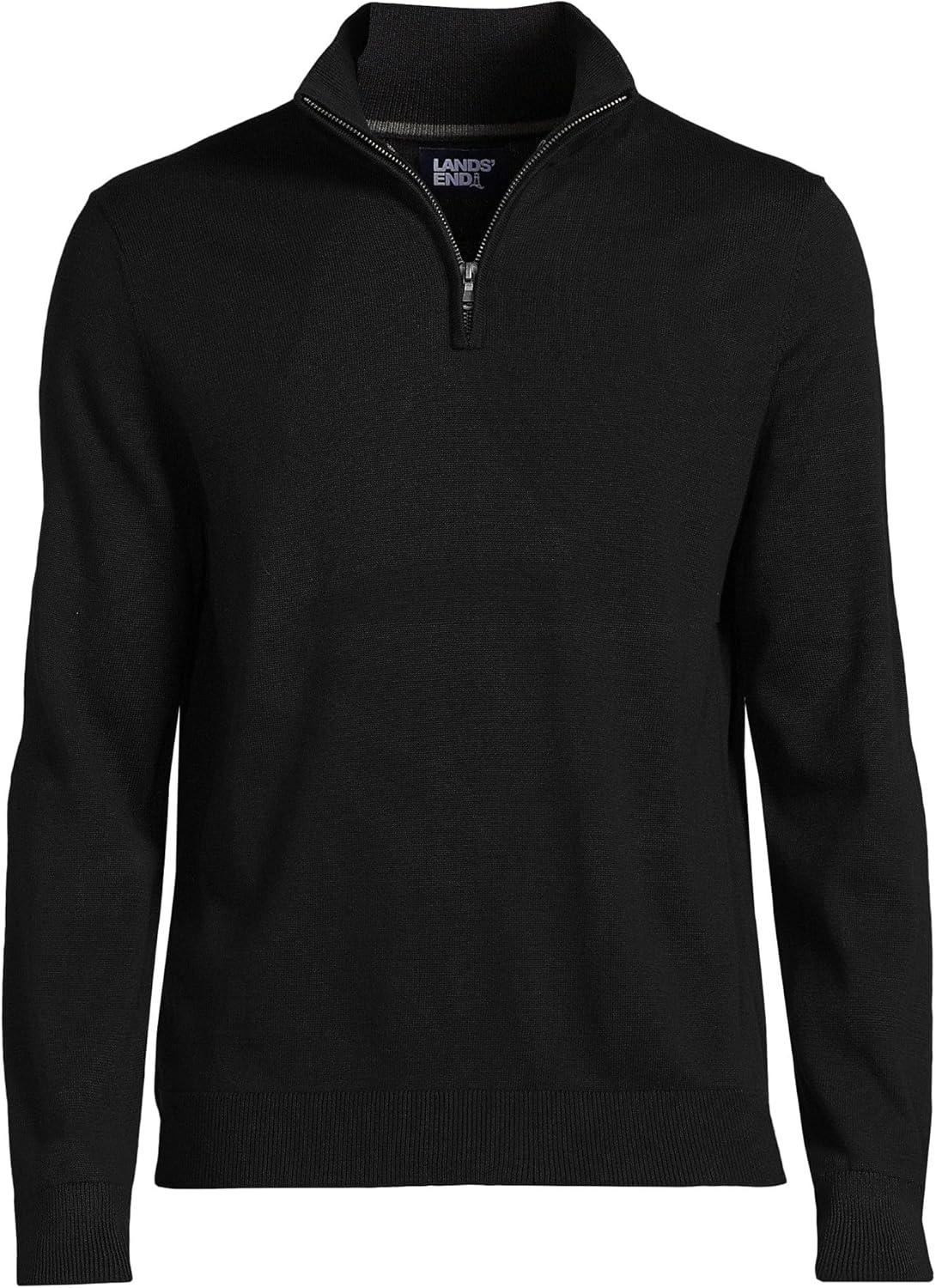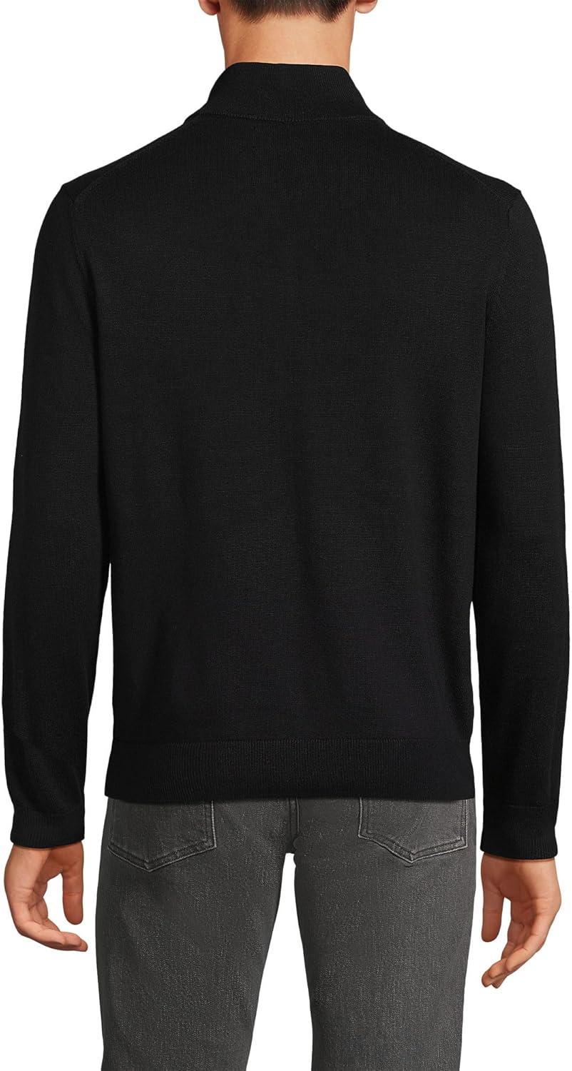 Lands’ End Men’s Long Sleeve Fine Gauge Cotton Quarter Zip Sweater(Black)