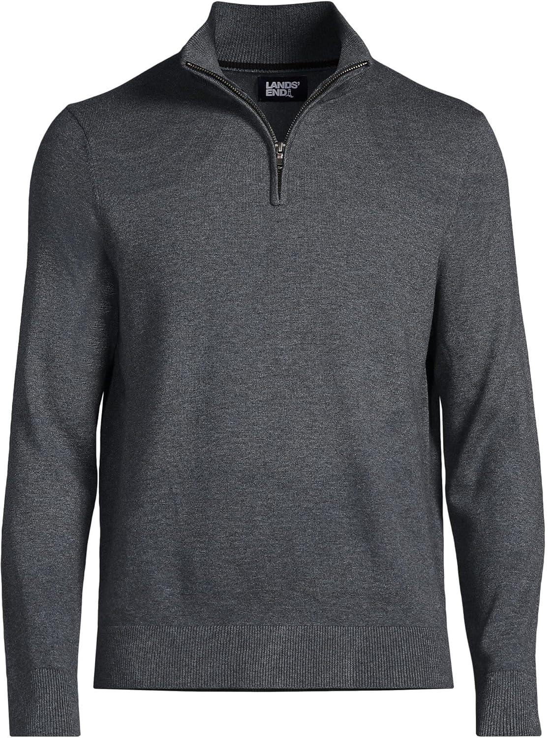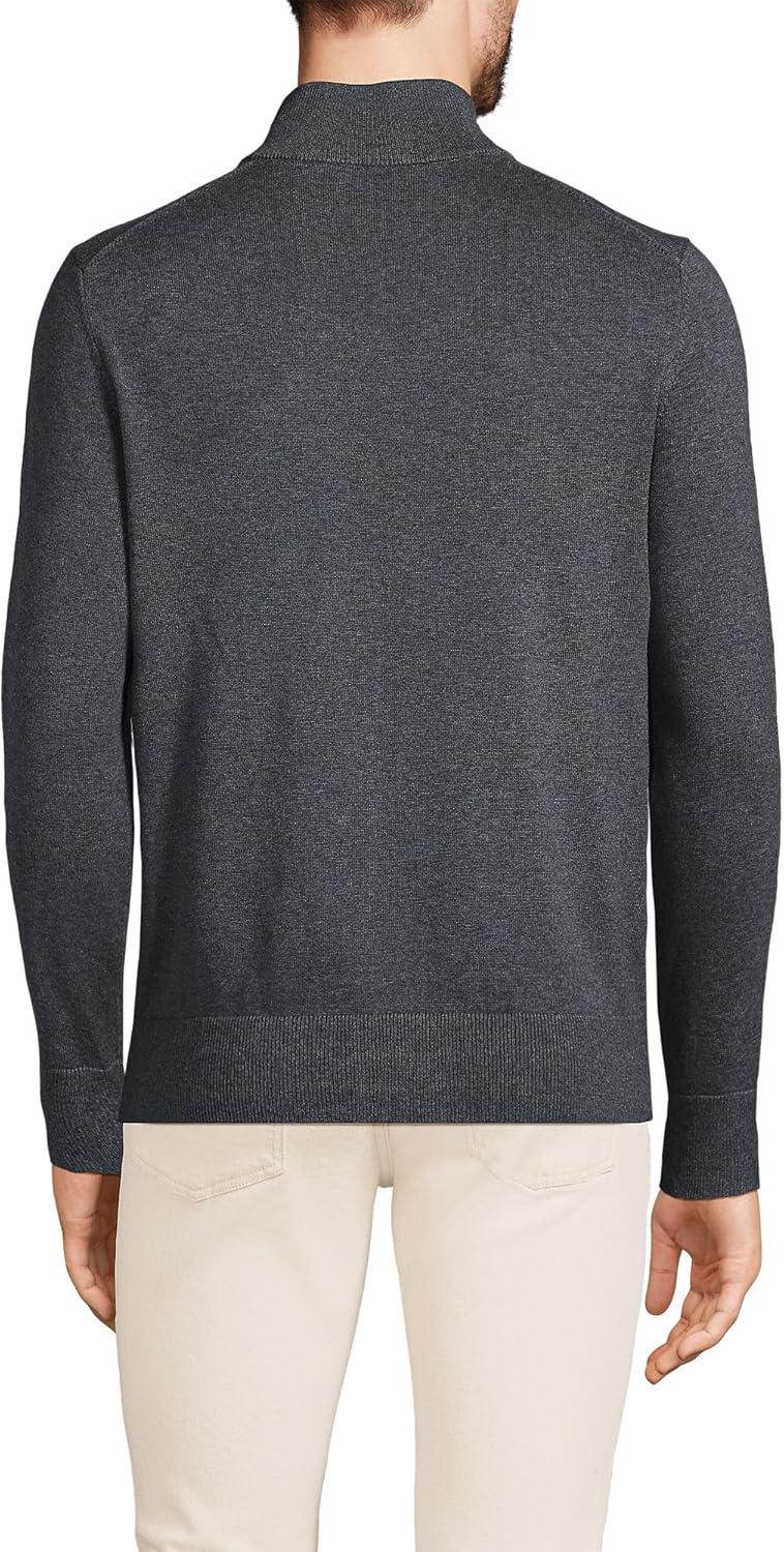 Lands’ End Men’s Long Sleeve Fine Gauge Cotton Quarter Zip Sweater(Charcoal Heather)