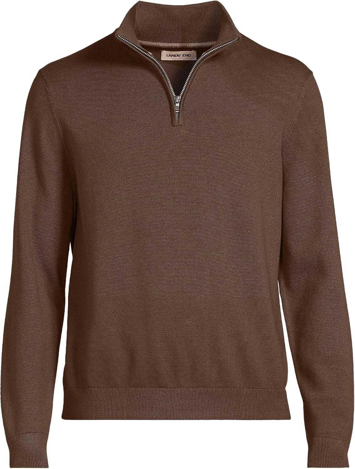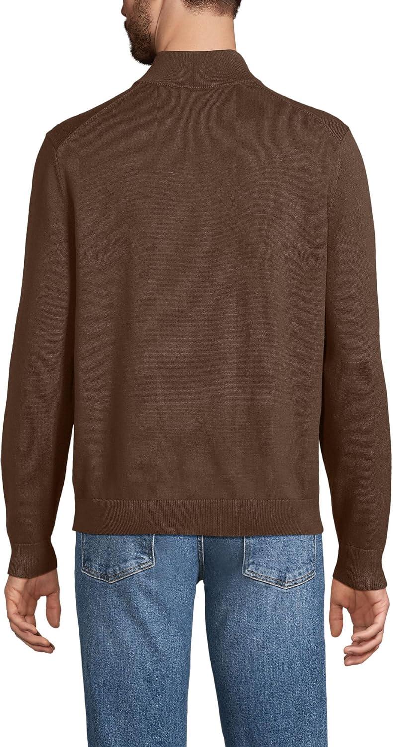 Lands’ End Men’s Long Sleeve Fine Gauge Cotton Quarter Zip Sweater(Dark Walnut Brown)