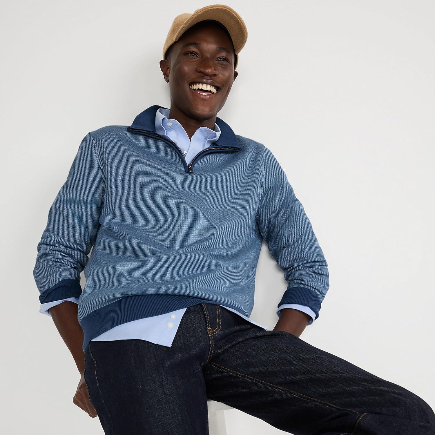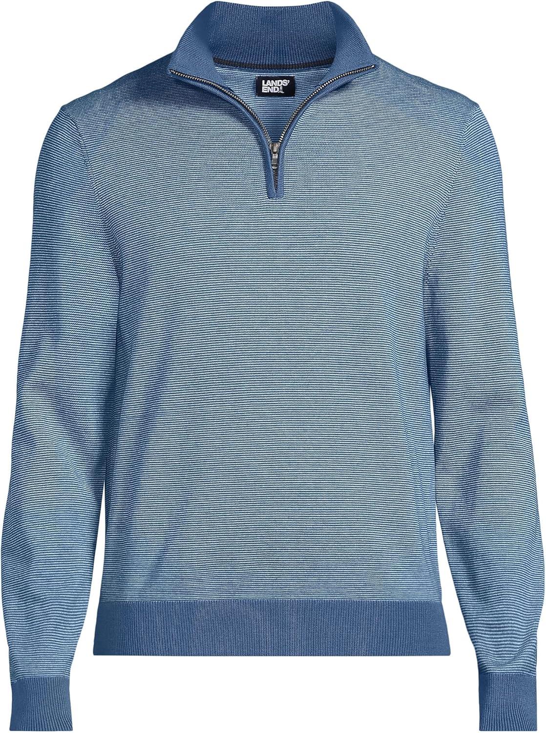 Lands’ End Men’s Long Sleeve Fine Gauge Cotton Quarter Zip Sweater(Light Indigo Blue Stripe)