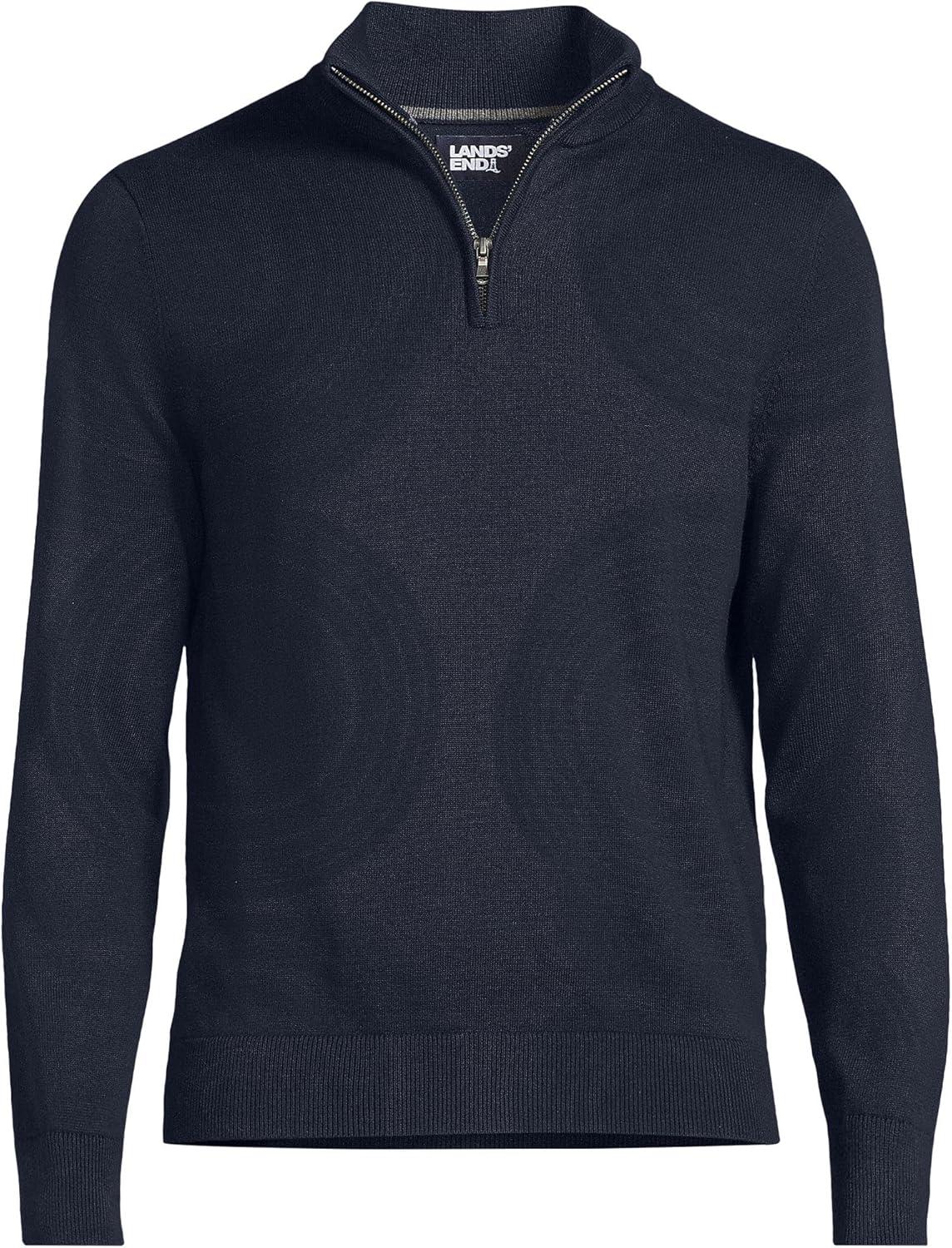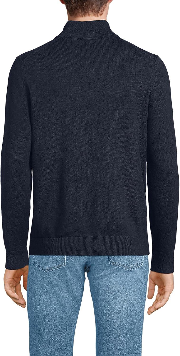 Lands’ End Men’s Long Sleeve Fine Gauge Cotton Quarter Zip Sweater(Radiant Navy)