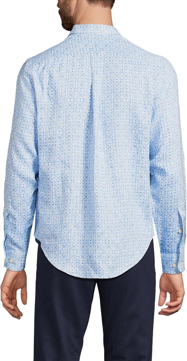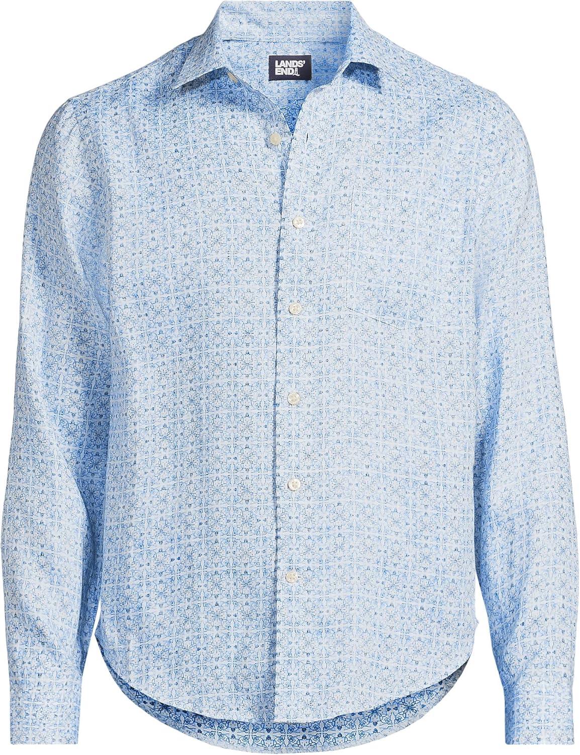 Lands’ End Men’s Long Sleeve Linen Shirt(Crisp Blue Mosaic)