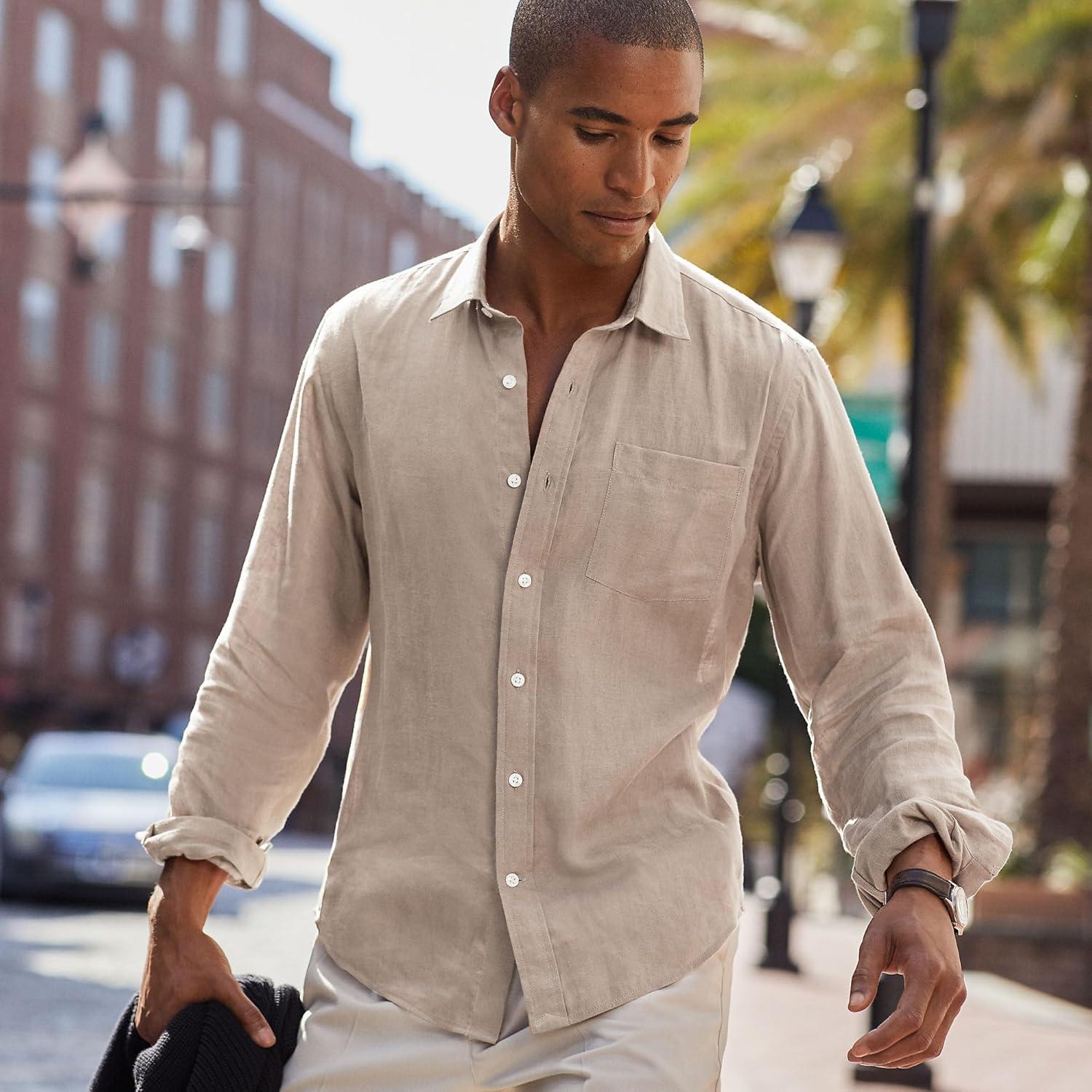 Lands’ End Men’s Long Sleeve Linen Shirt(Rich Camel)