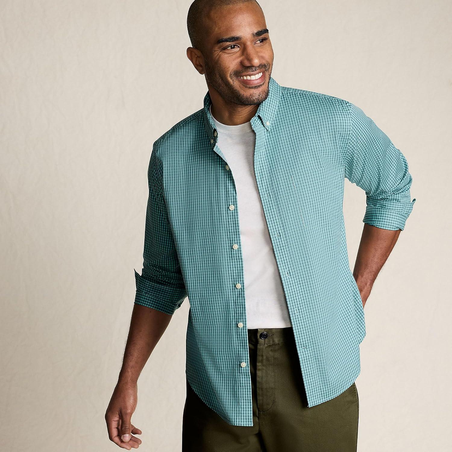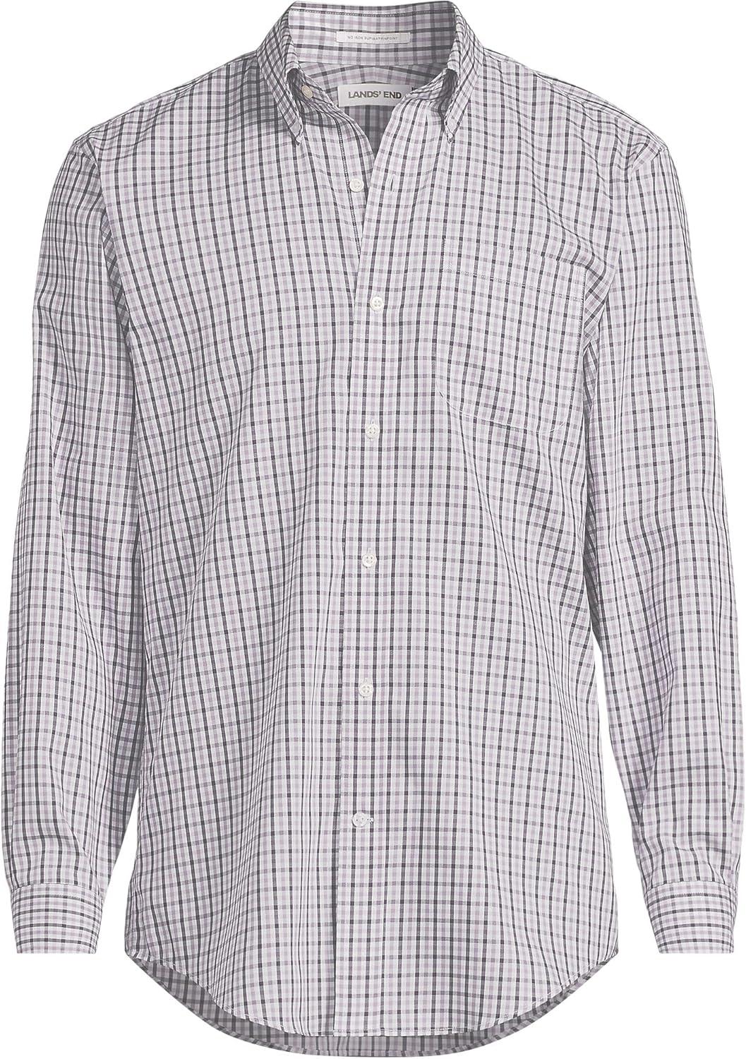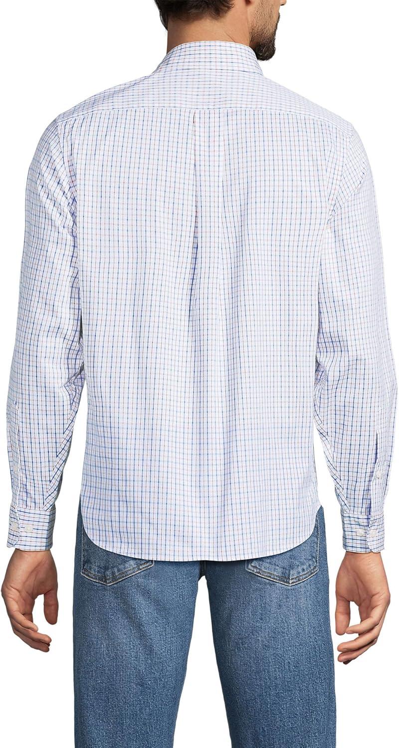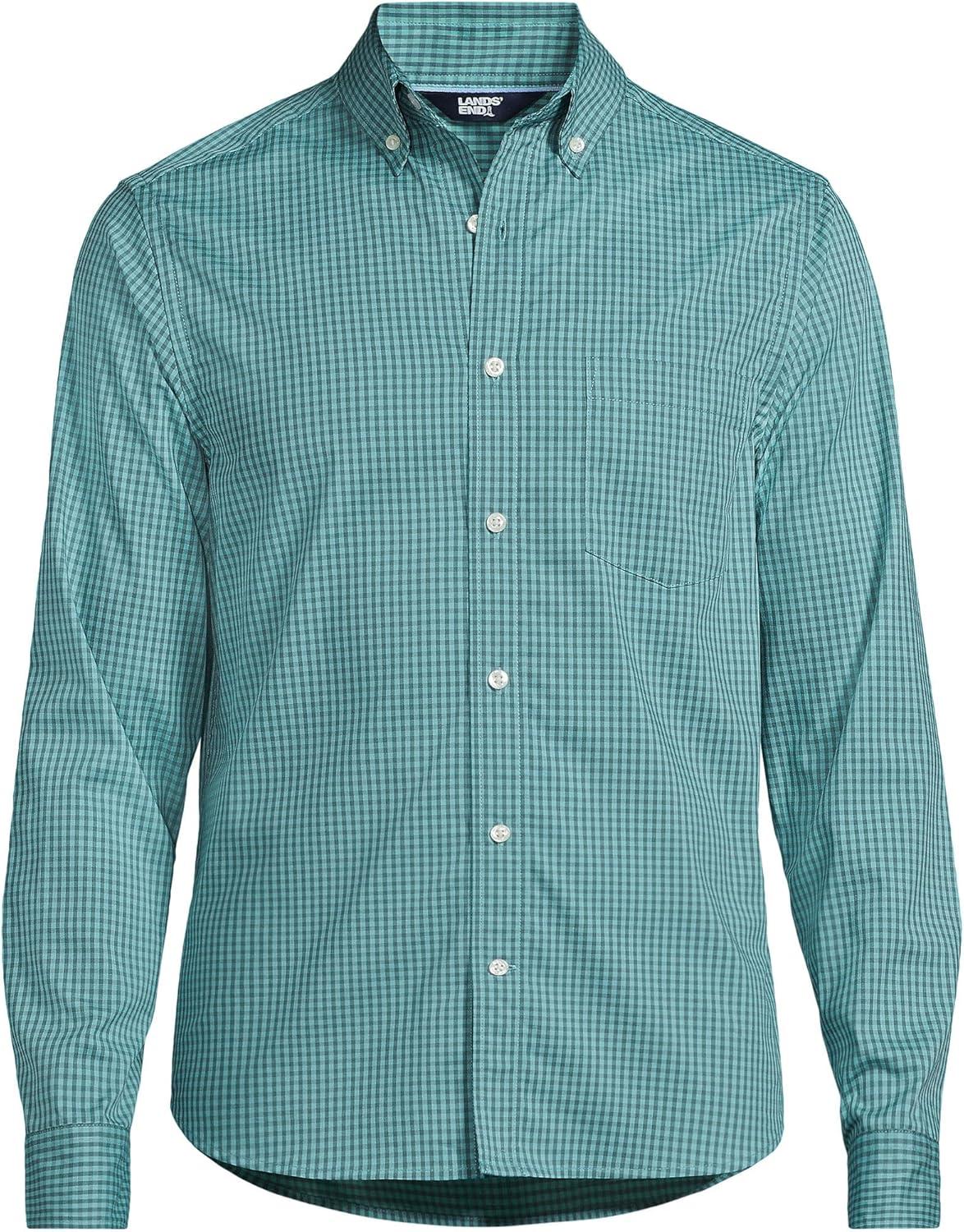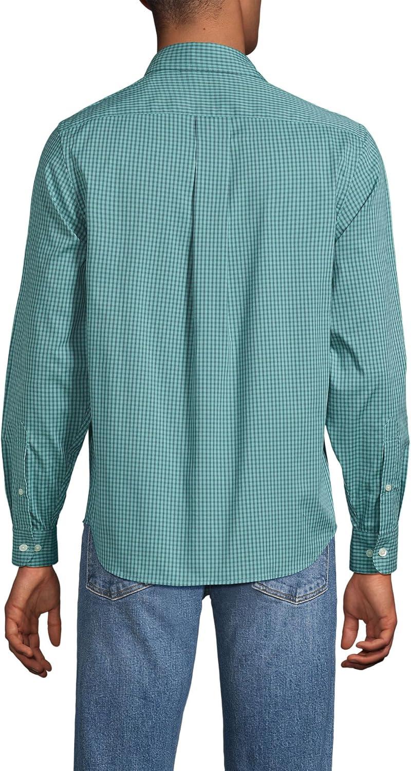 Lands’ End Men’s Traditional Fit Long Sleeve Travel Kit Shirt(Tourmaline Gingham)