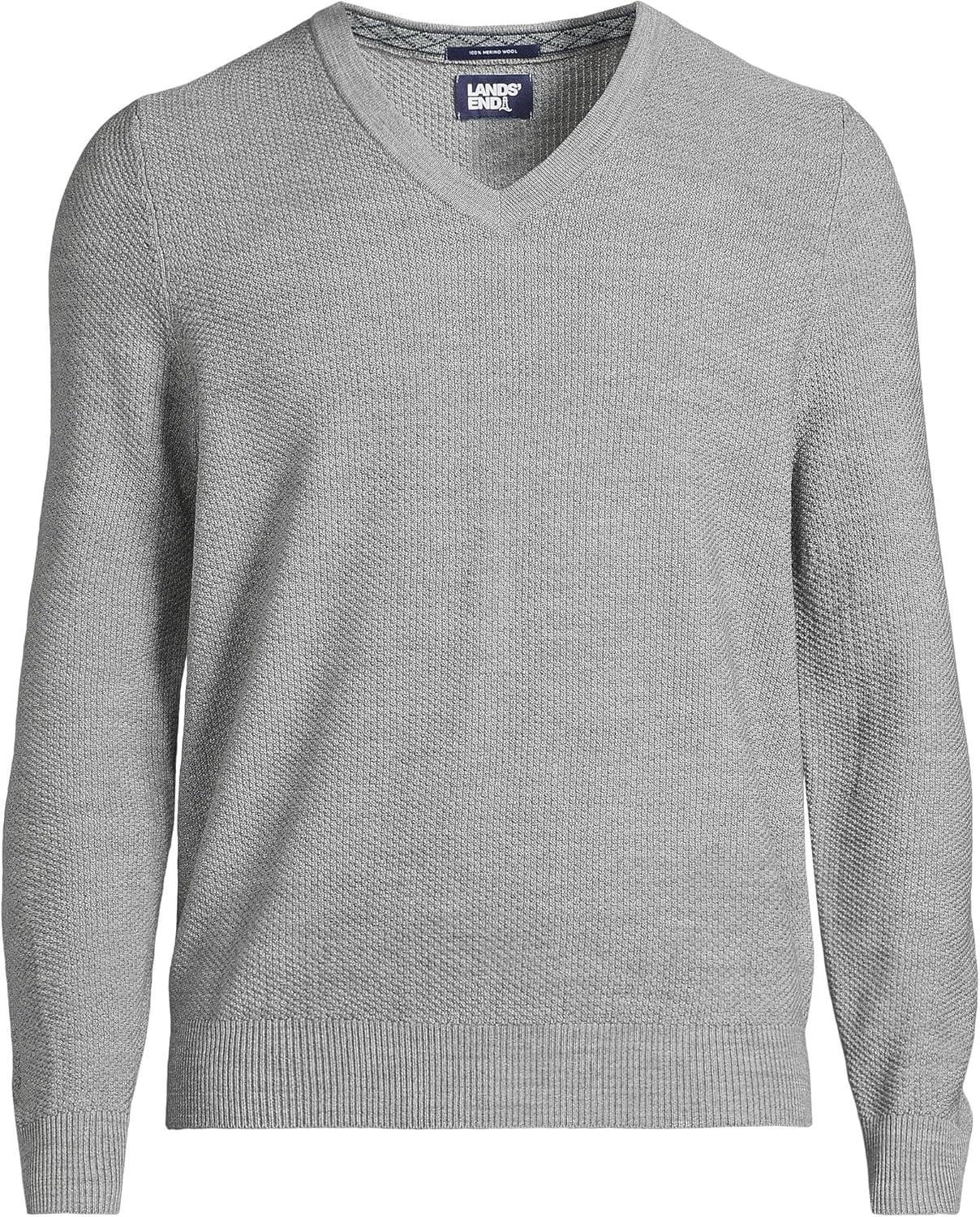 Lands’ End Men’s Long Sleeve Washable Merino Wool V Neck Sweater(Pewter Heather)