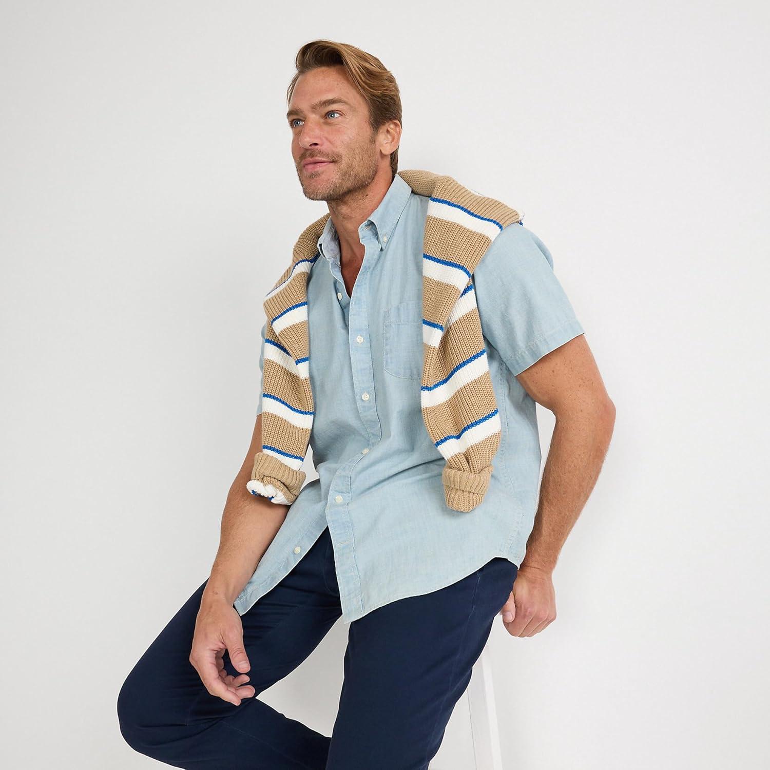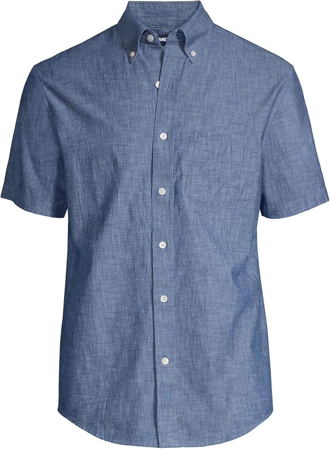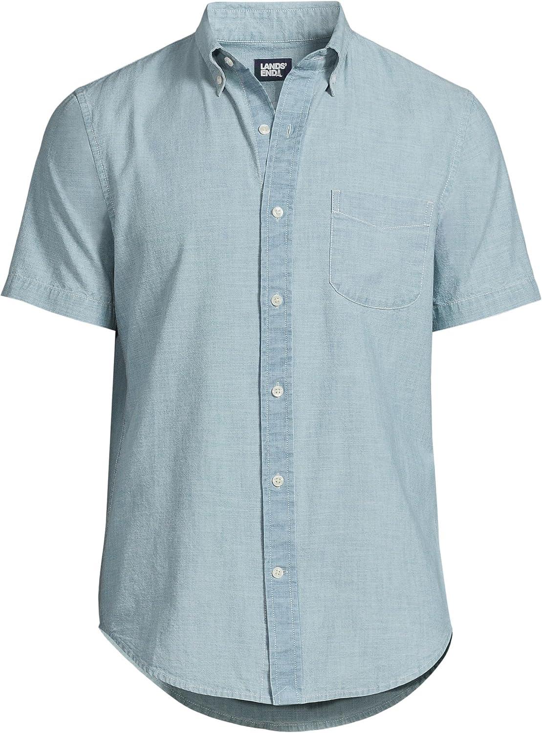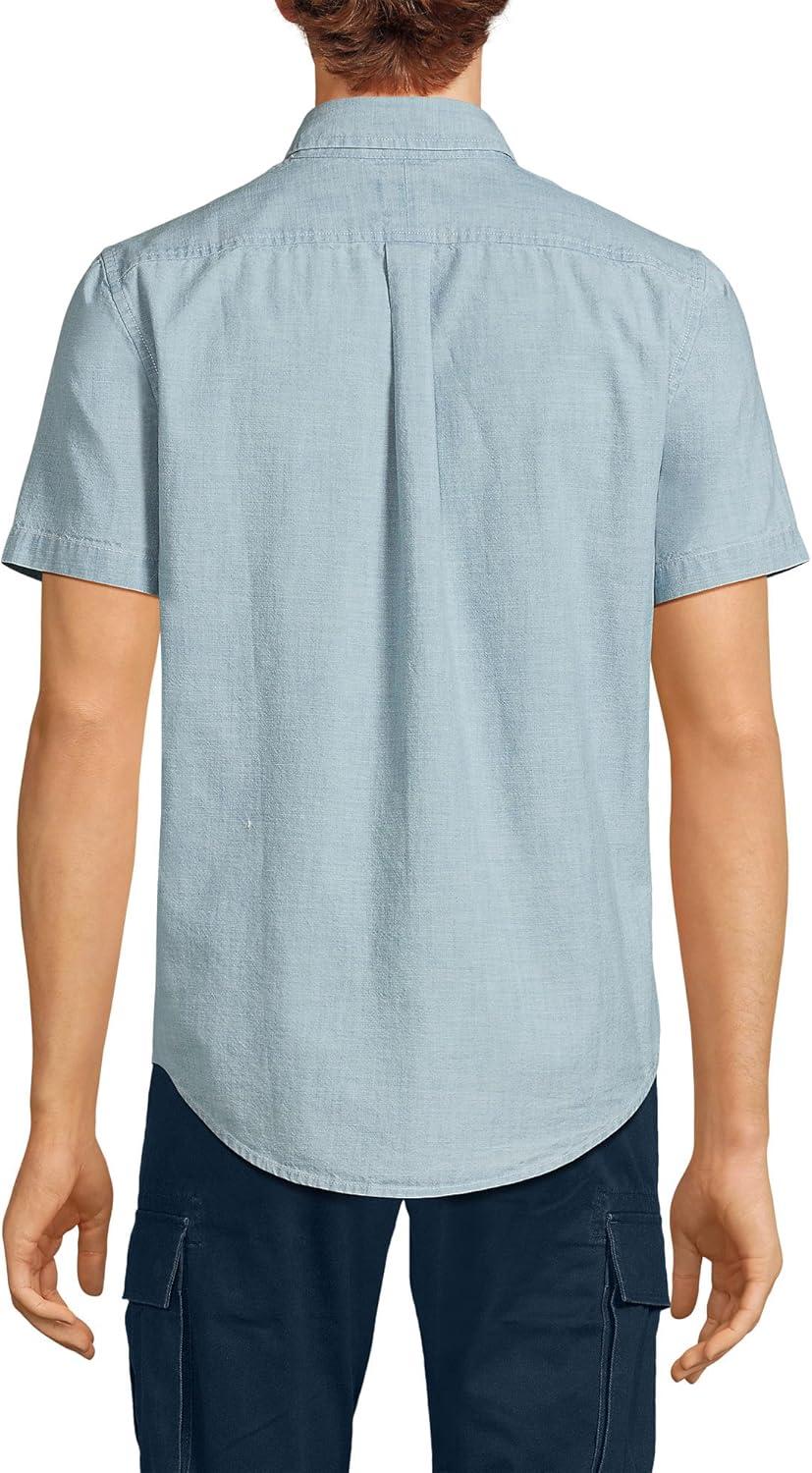 Lands’ End Men’s Short Sleeve Button Down Chambray Shirt(Light Indigo Chambray)