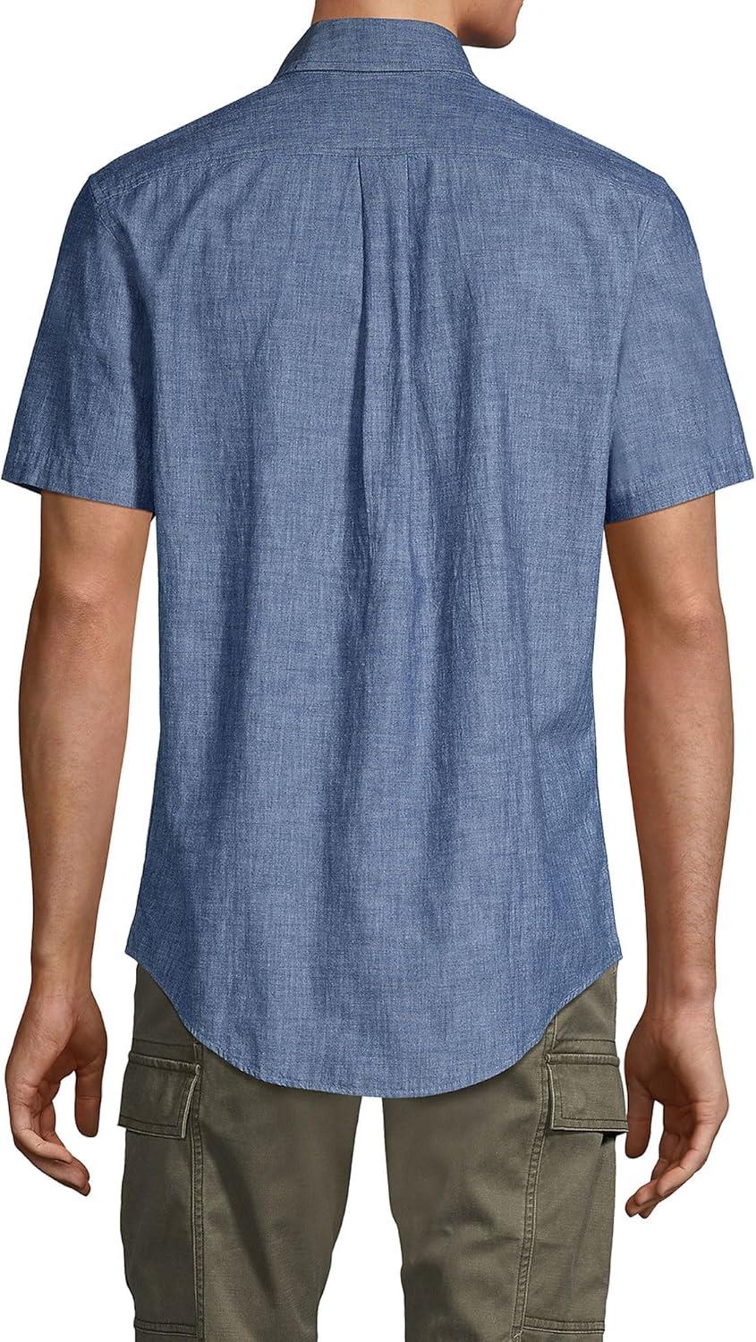 Lands’ End Men’s Short Sleeve Button Down Chambray Shirt(Dark Wash)