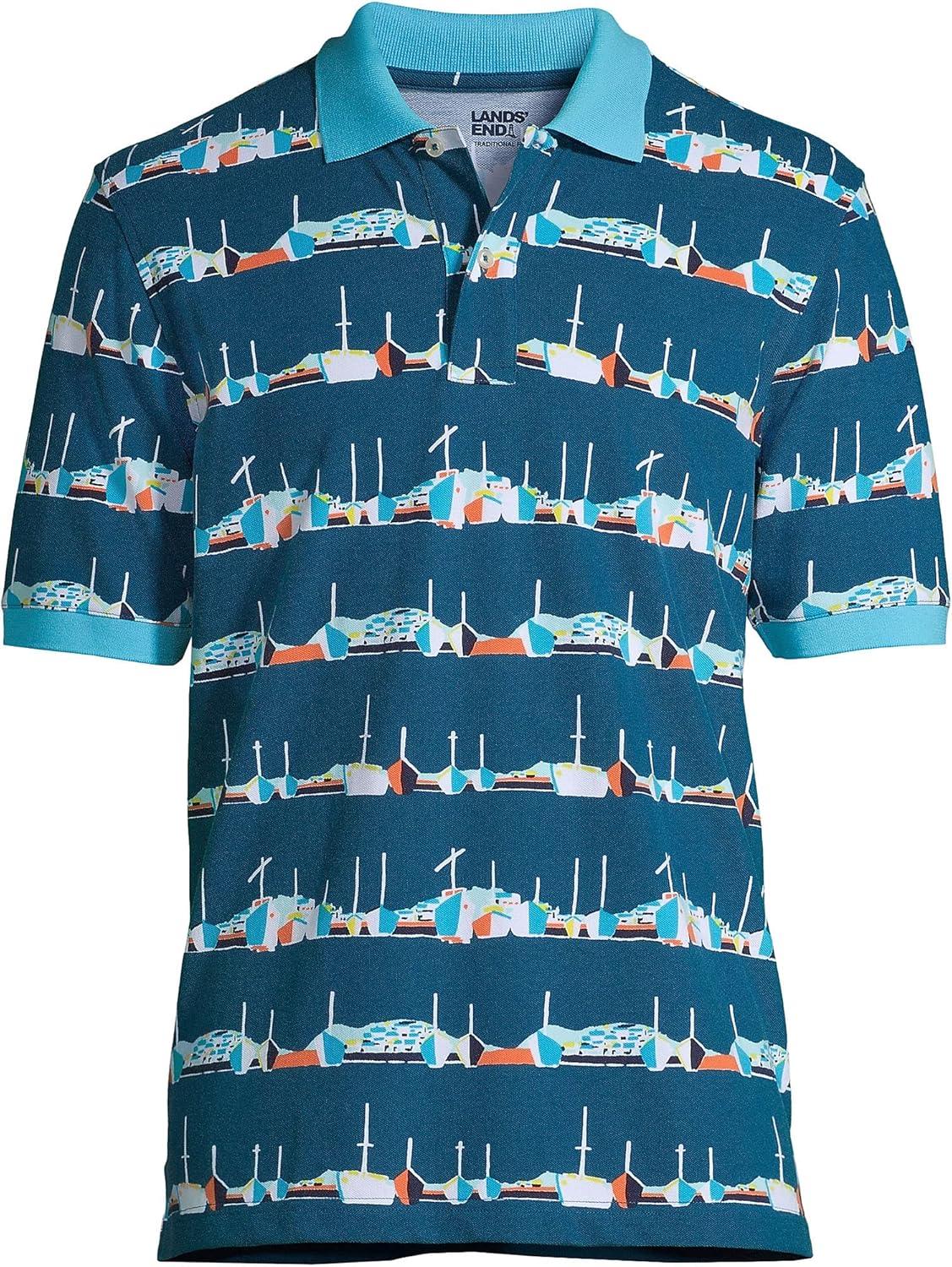 Lands’ End Men’s Short Sleeve Comfort-First Mesh Polo Shirt(Baltic Teal Docked Boats)