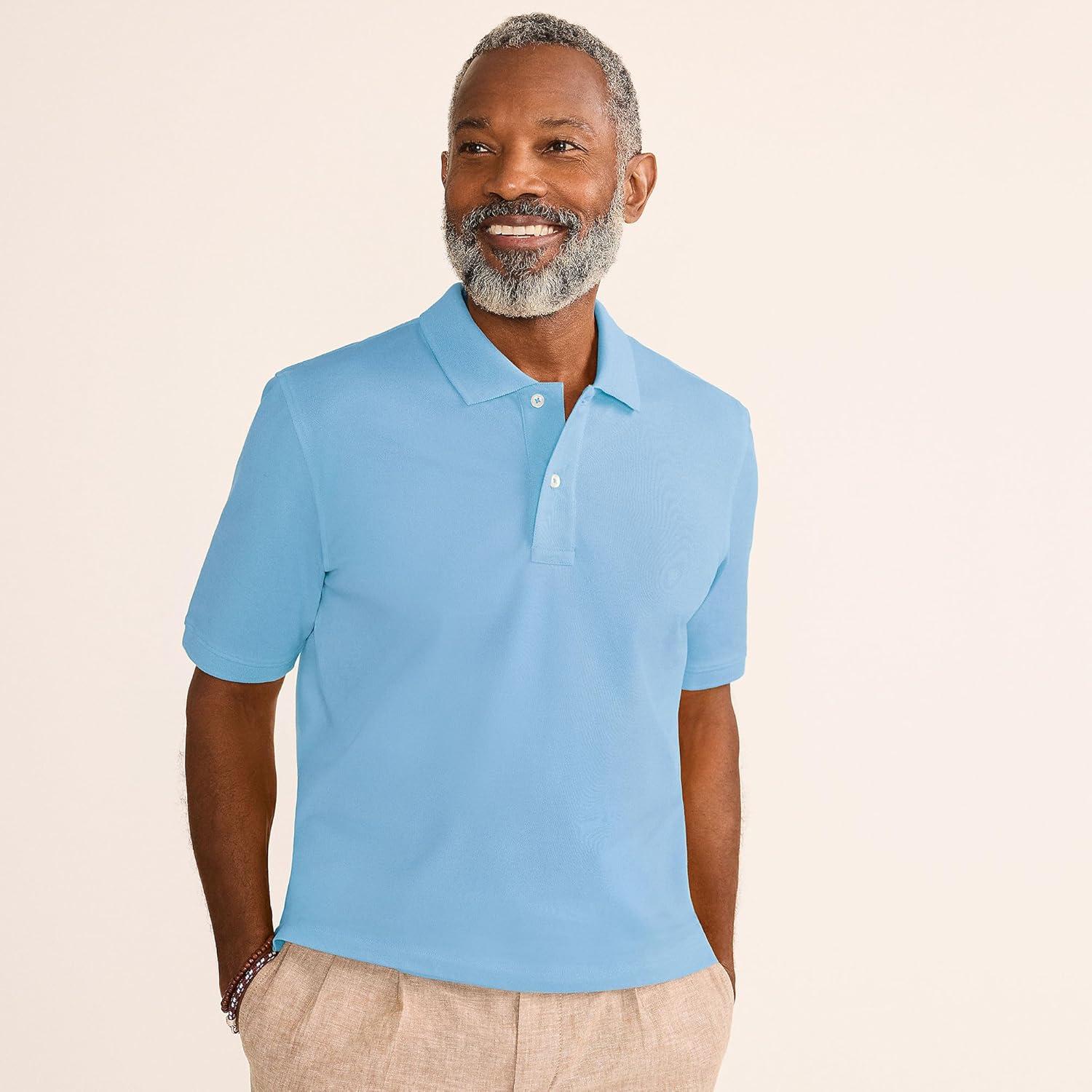 Lands’ End Men’s Short Sleeve American-Grown Supima Cotton Polo Shirt(Soft Blue Haze)