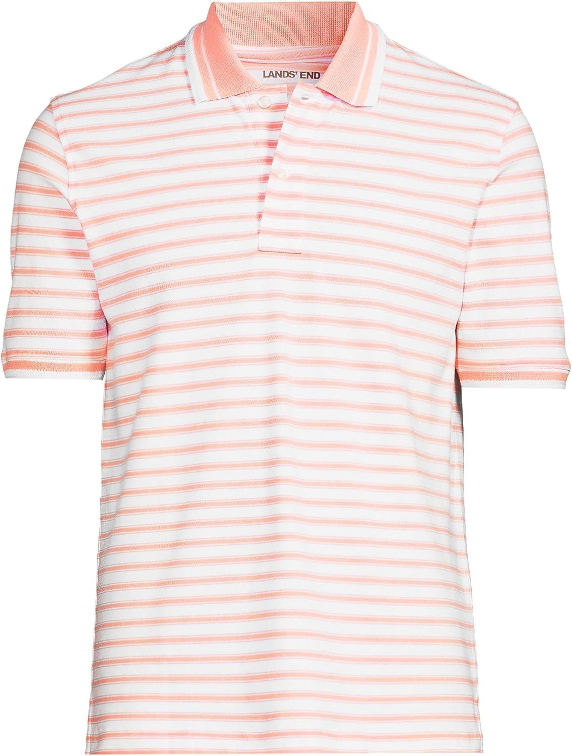 Lands’ End Men’s Short Sleeve Comfort-First Mesh Polo Shirt(White/Crisp Peach Stripe)