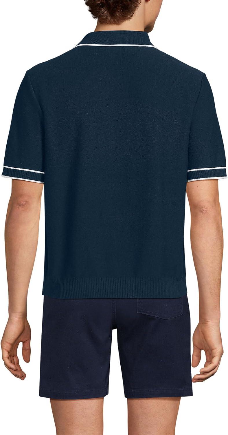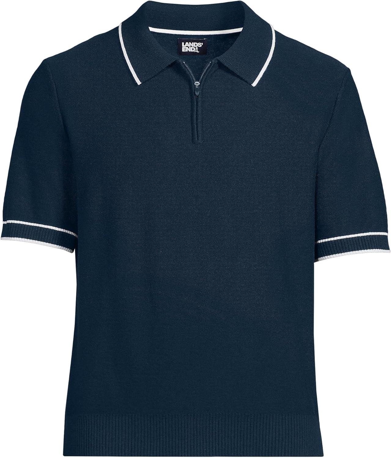 Lands’ End Men’s Short Sleeve Cooling Zip Sweater Polo(Radiant Navy)