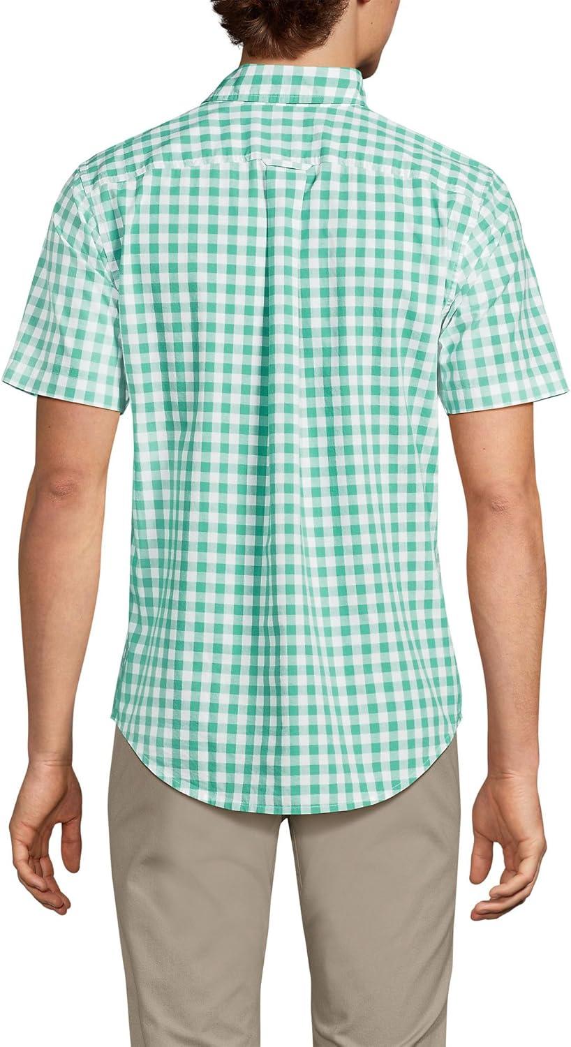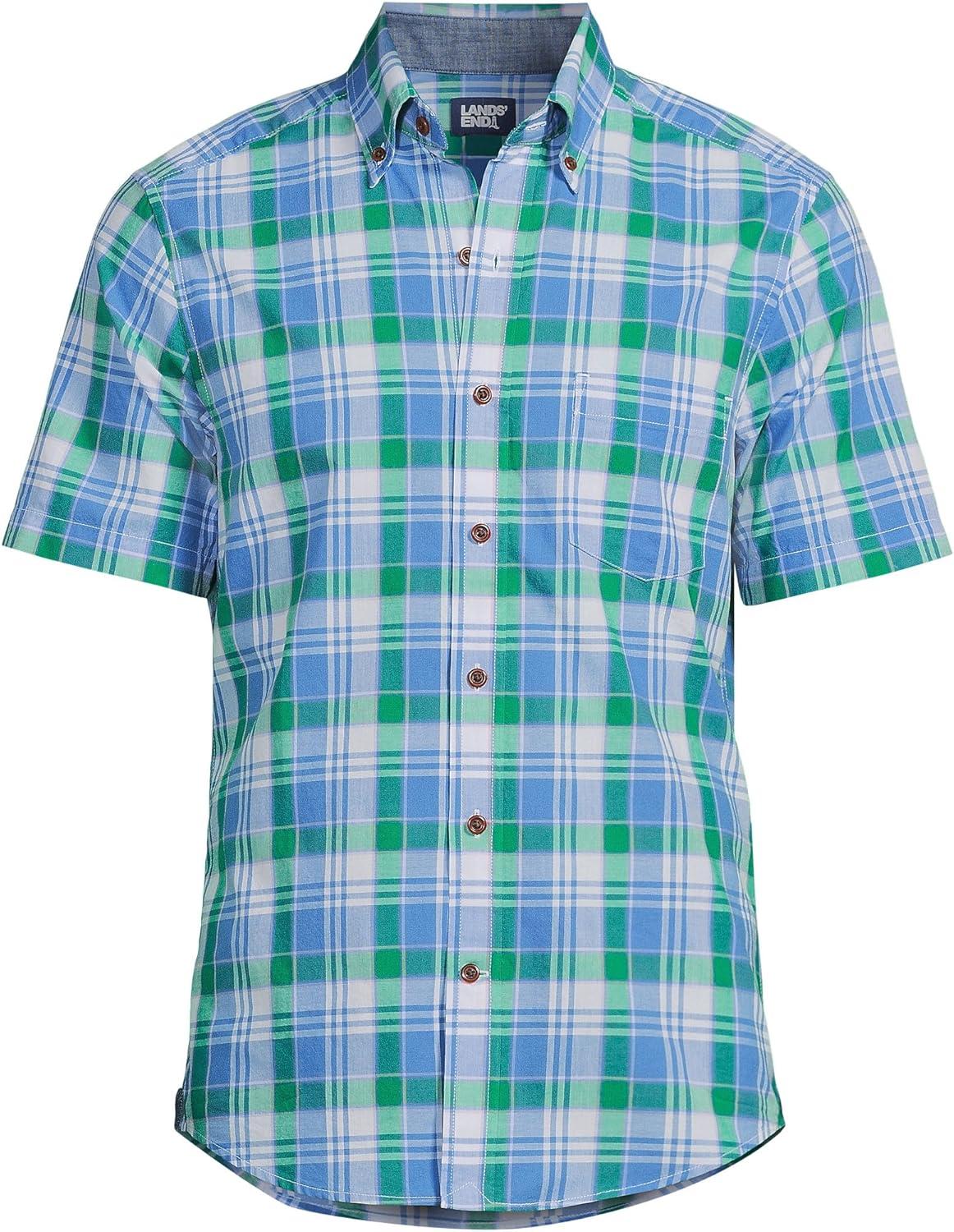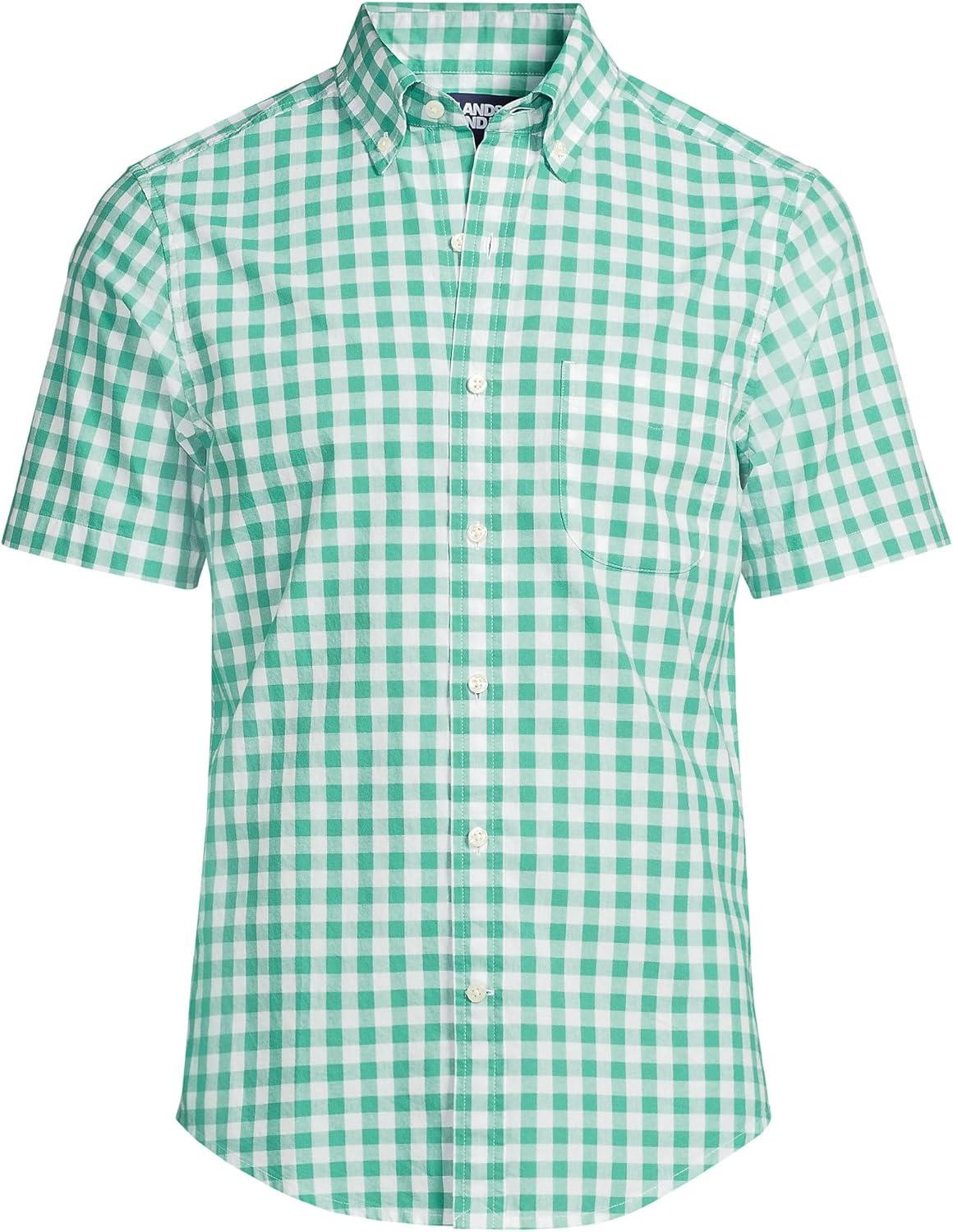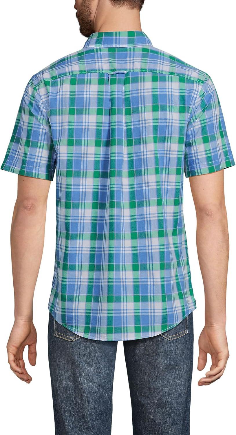 Lands’ End Men’s Short Sleeve Essential Lightweight Poplin(Bay Water Green Check)