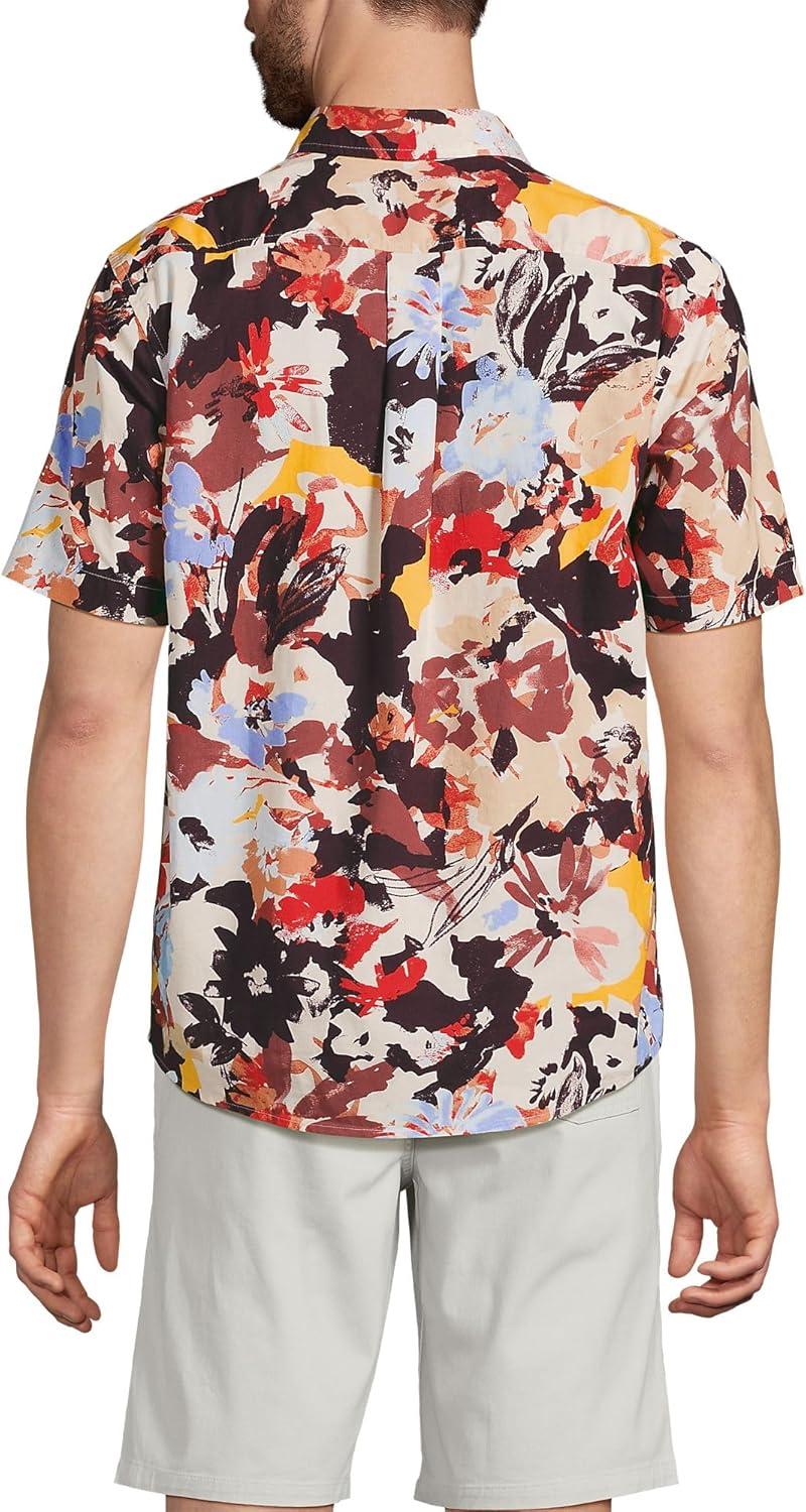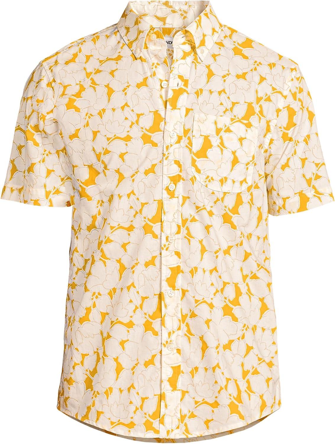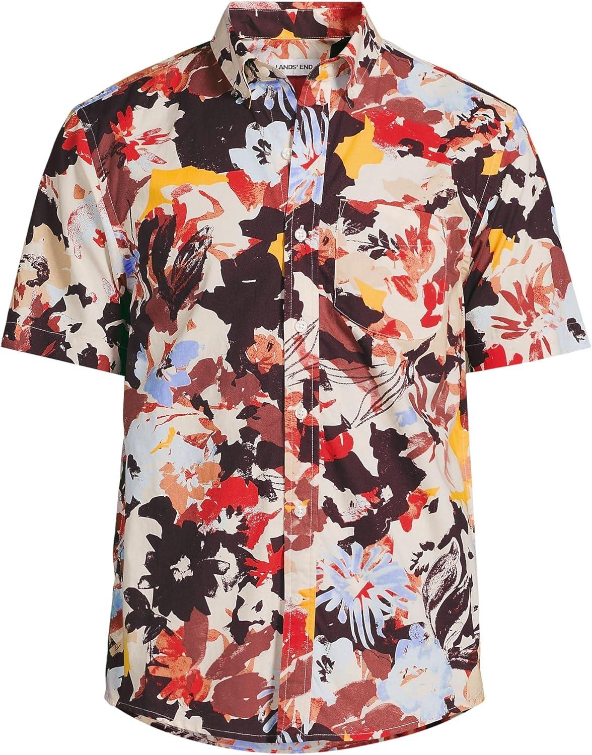 Lands’ End Men’s Short Sleeve Essential Lightweight Poplin(Sweet Mango Tossed Floral)