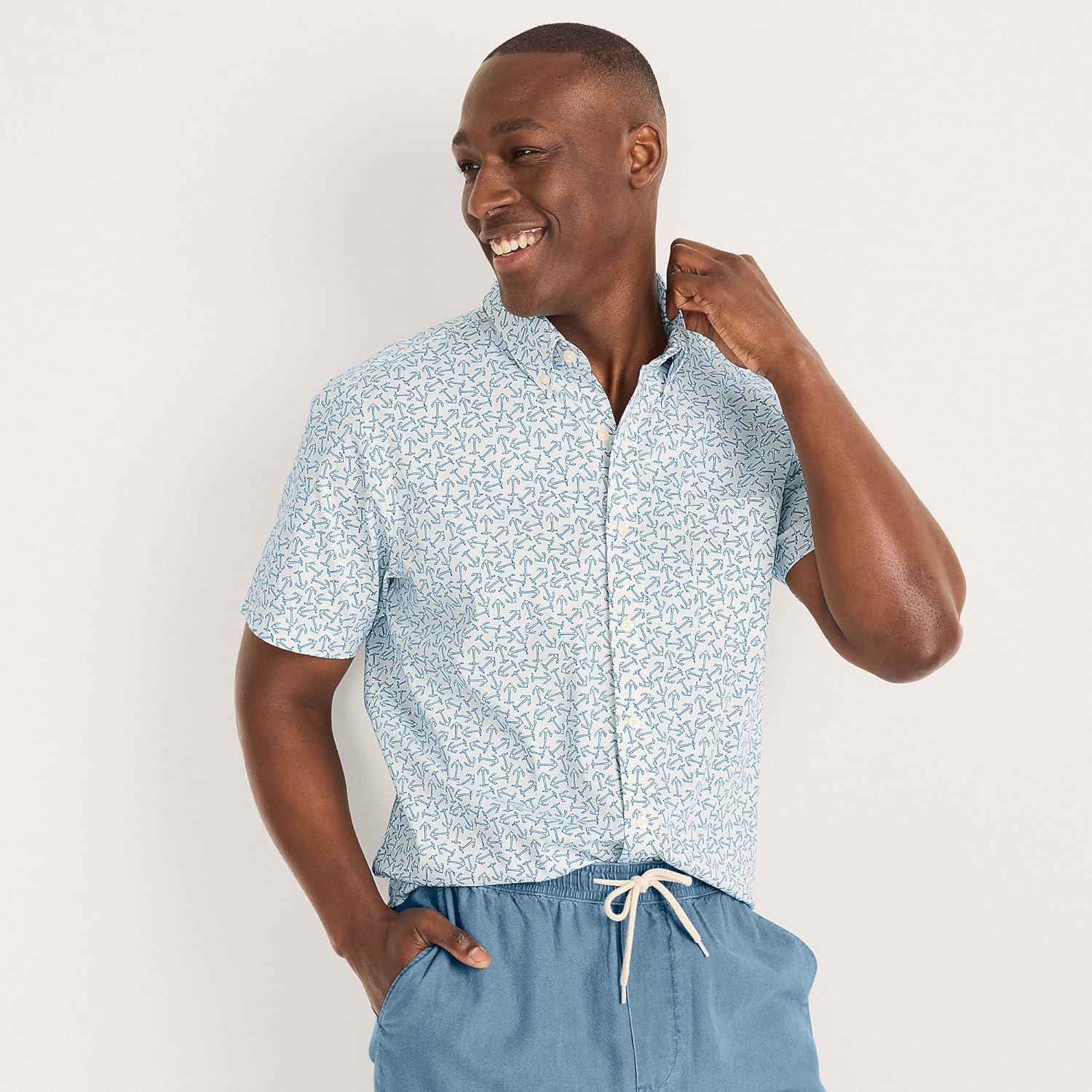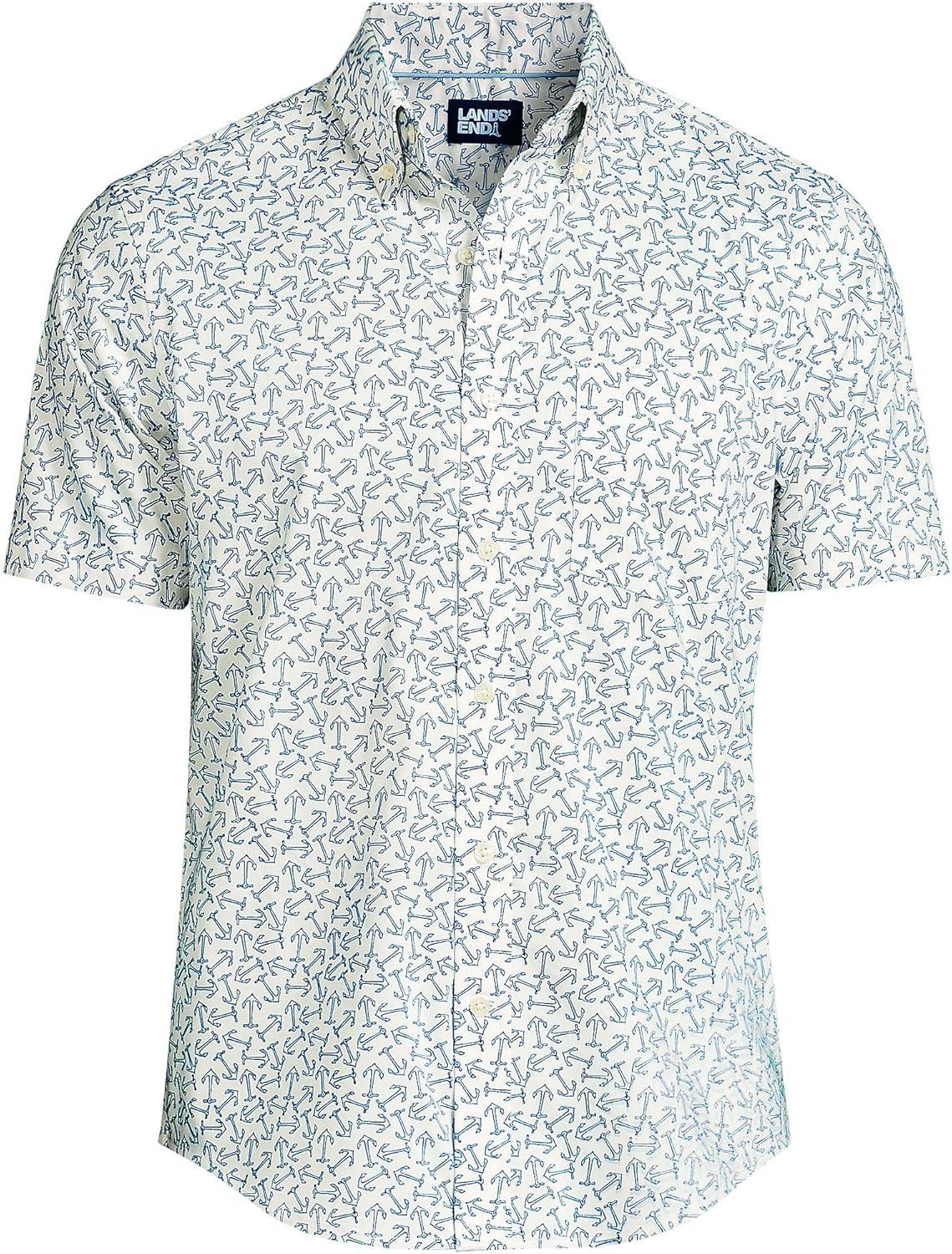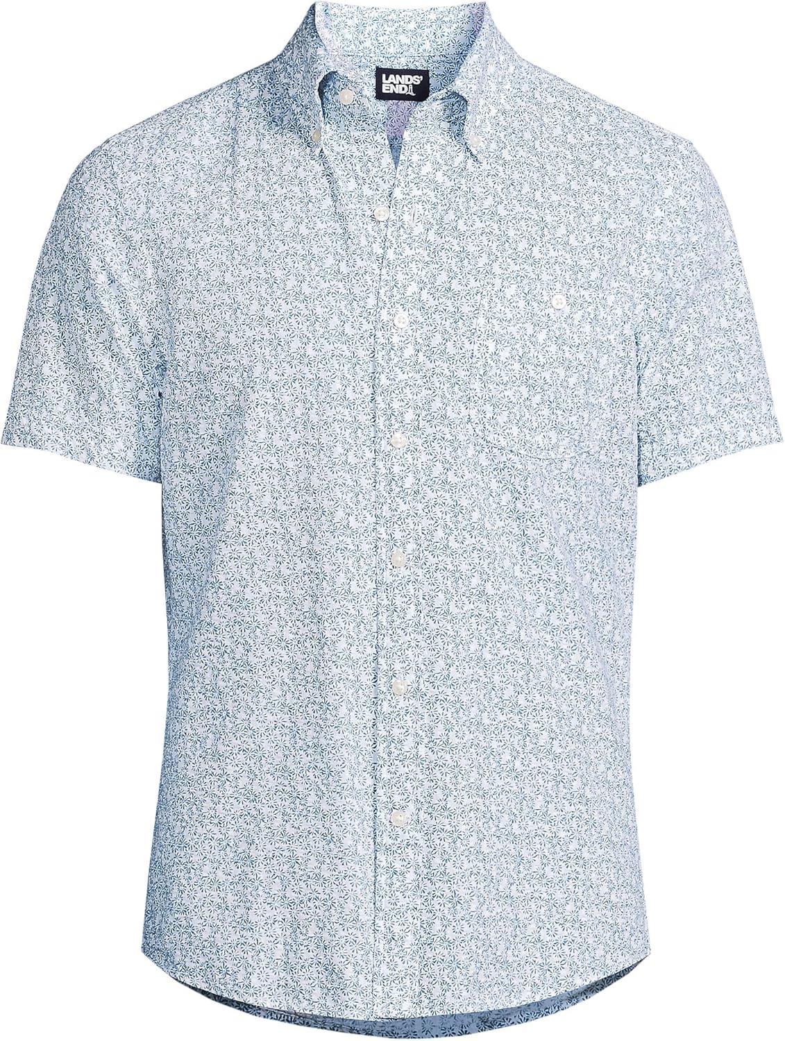 Lands’ End Men’s Short Sleeve Essential Lightweight Poplin(Sweet Mango Tossed Floral)