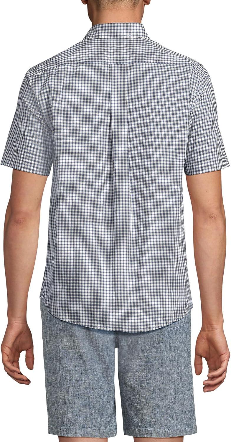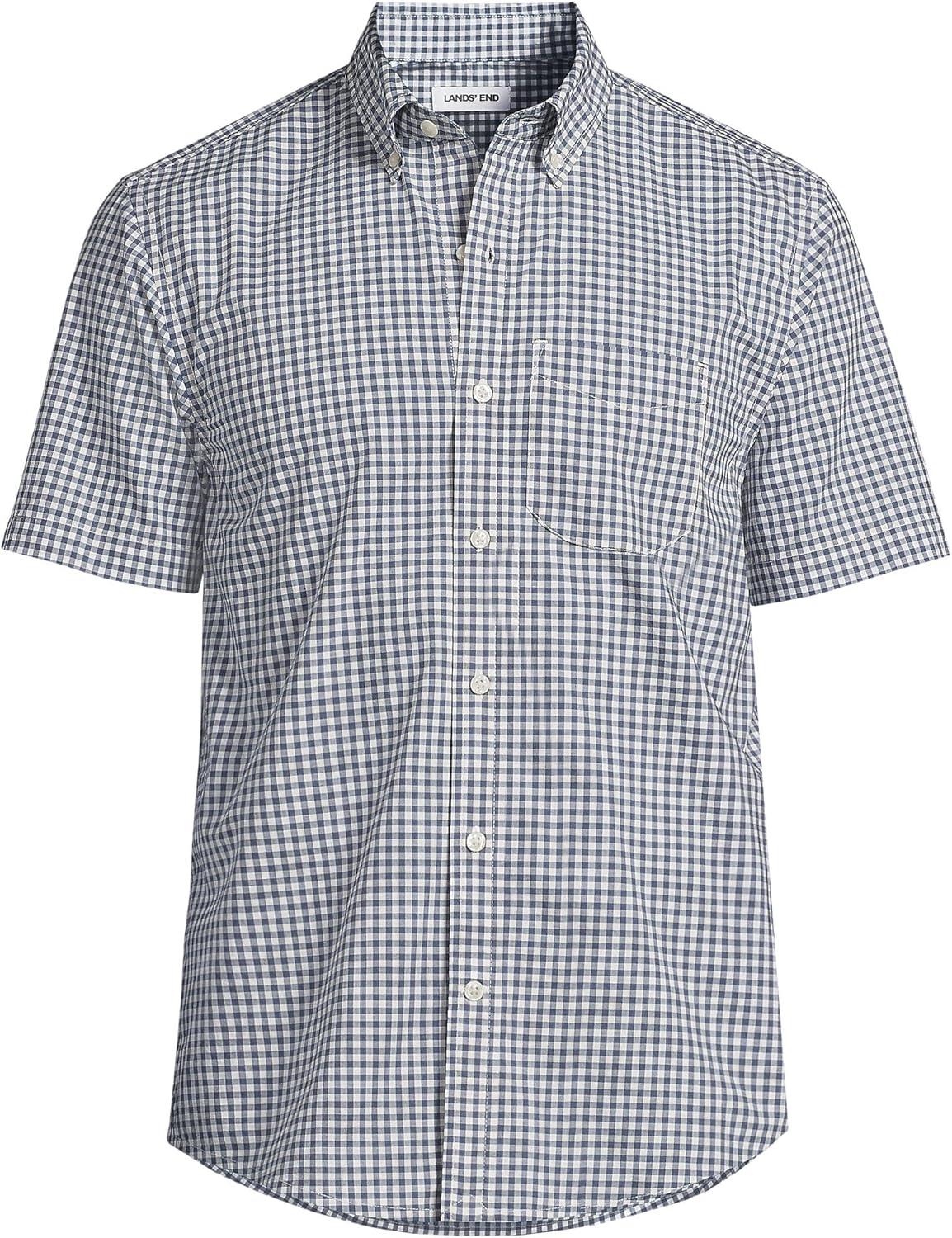 Lands’ End Men’s Short Sleeve Essential Lightweight Poplin(Nightfall Blue Gingham)
