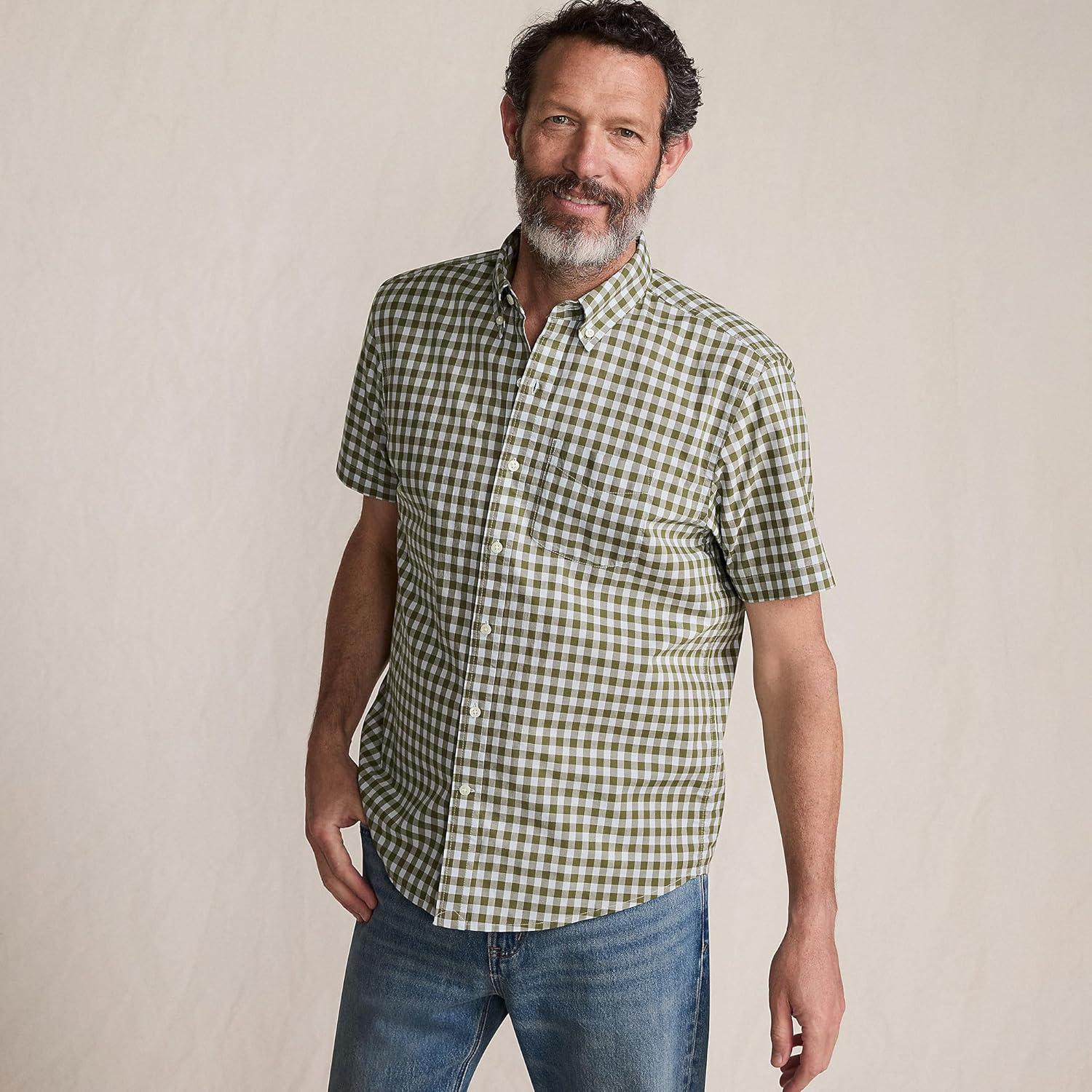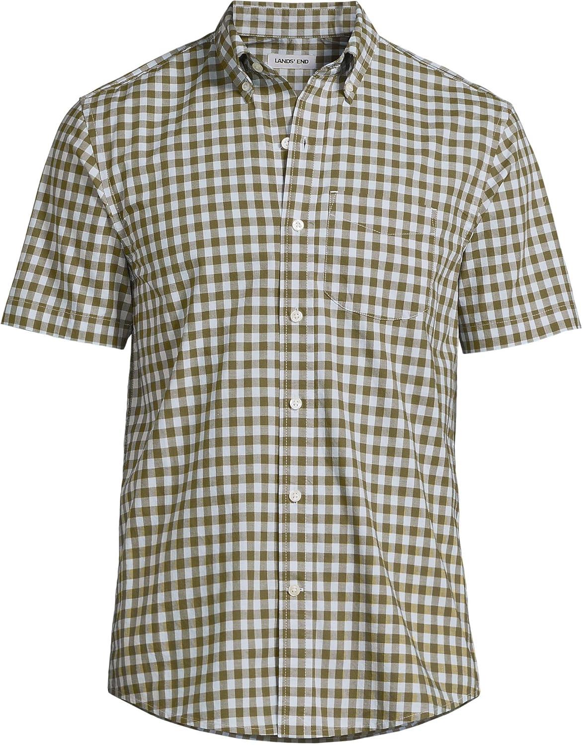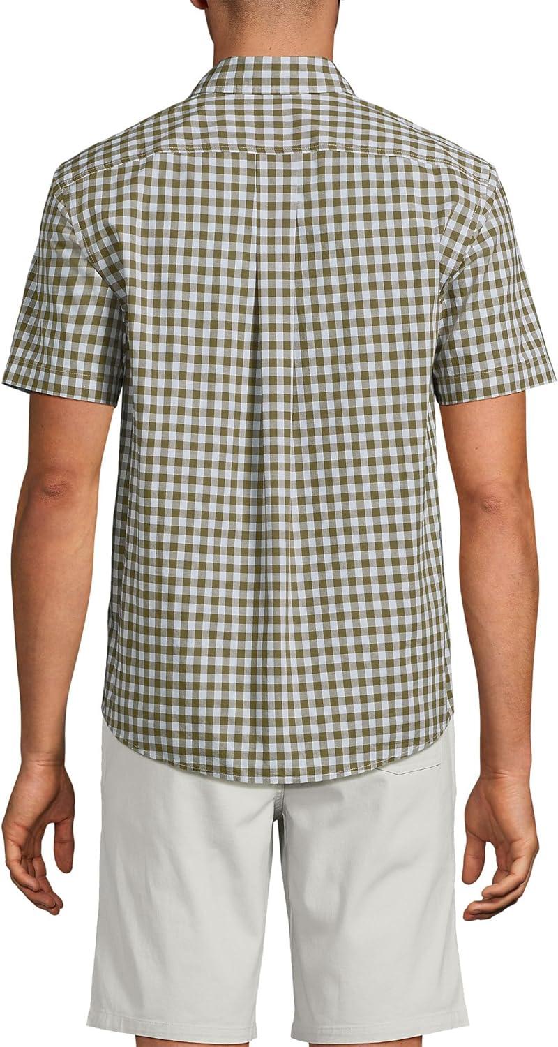 Lands’ End Men’s Short Sleeve Essential Lightweight Poplin(Olive Drab Gingham)