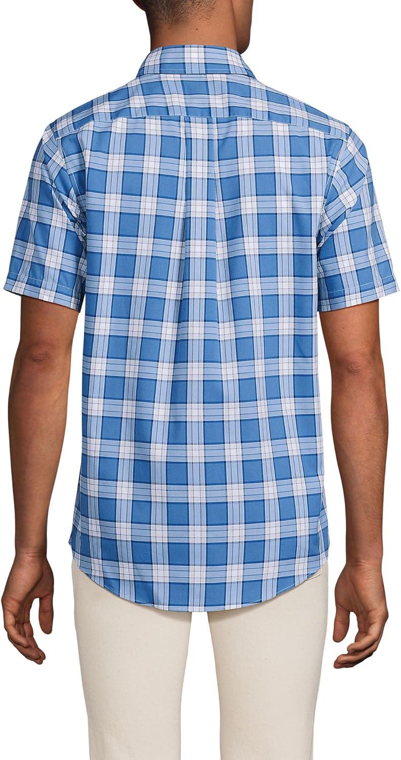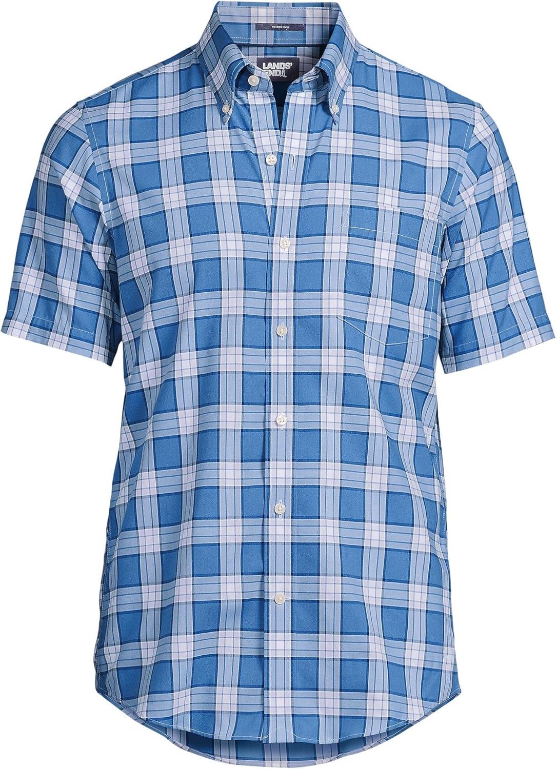 Lands’ End Men’s Short Sleeve No Iron Twill Shirt(Mariner Blue Plaid)
