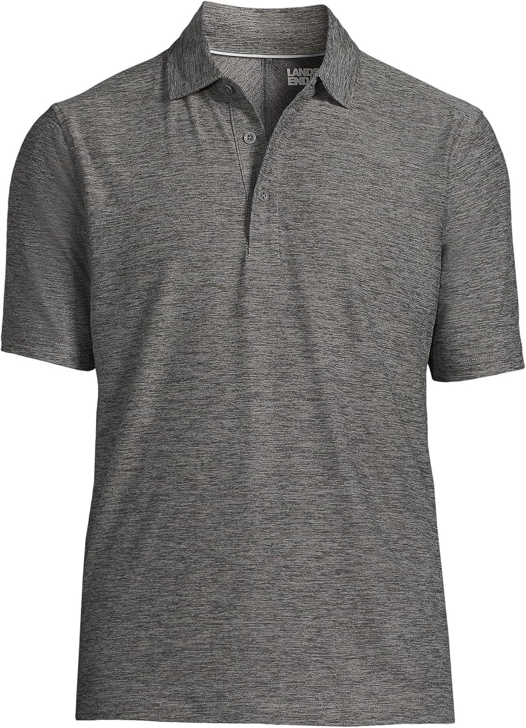 Lands’ End Men’s Short Sleeve Performance Pieced Yoke Hybrid Polo(Black Slate Spacedye)